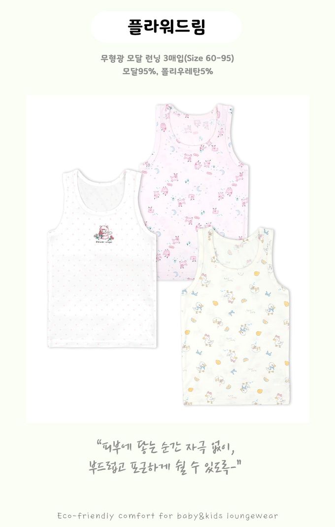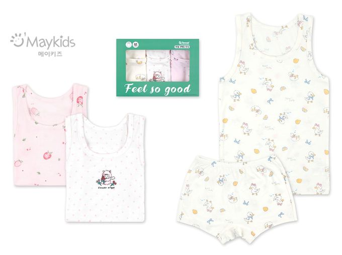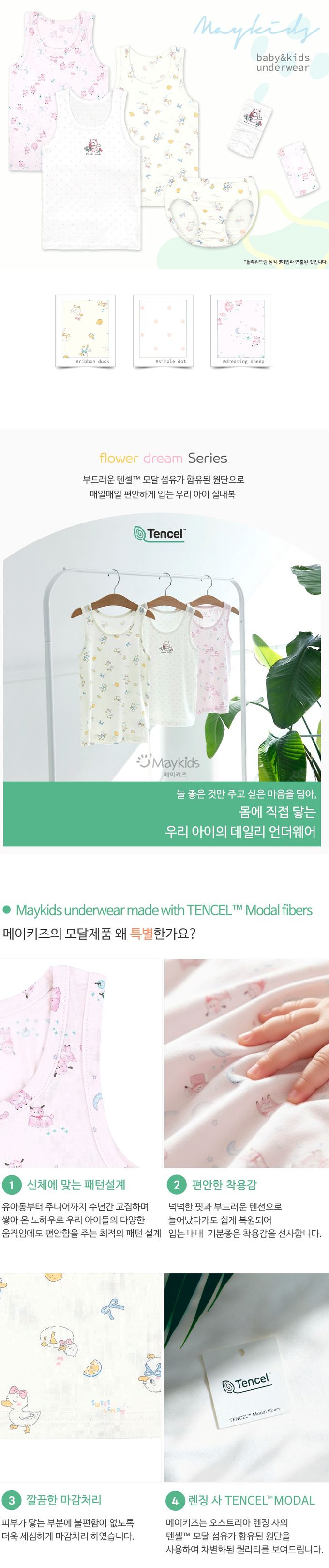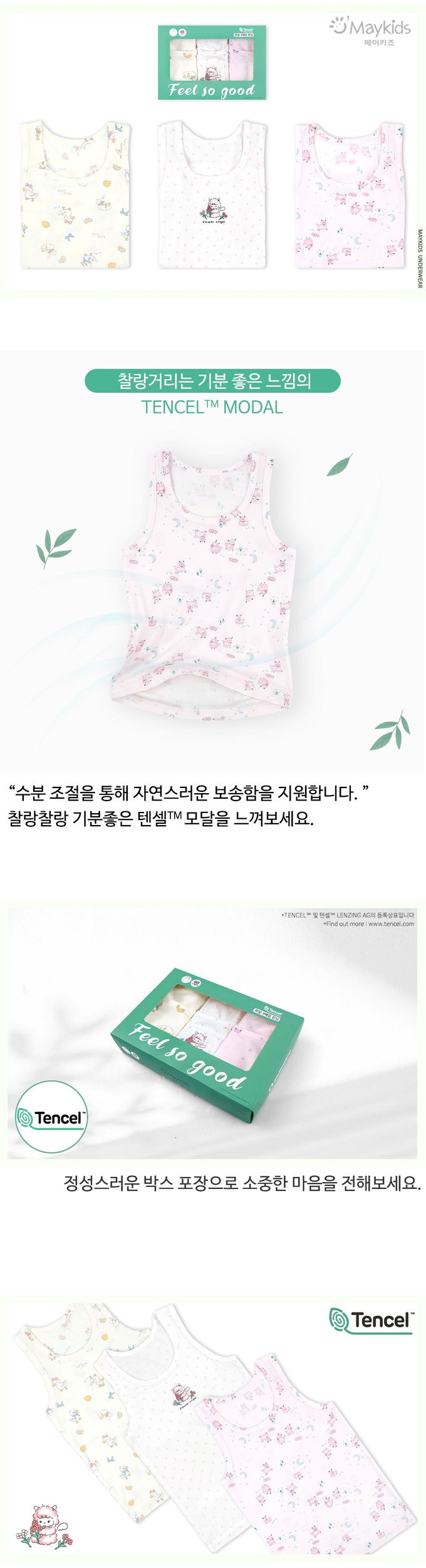韓國 Maykids - (3入組)女寶天絲莫代爾透氣背心-夢幻羊駝X鴨鴨-米黃X米白X淺粉