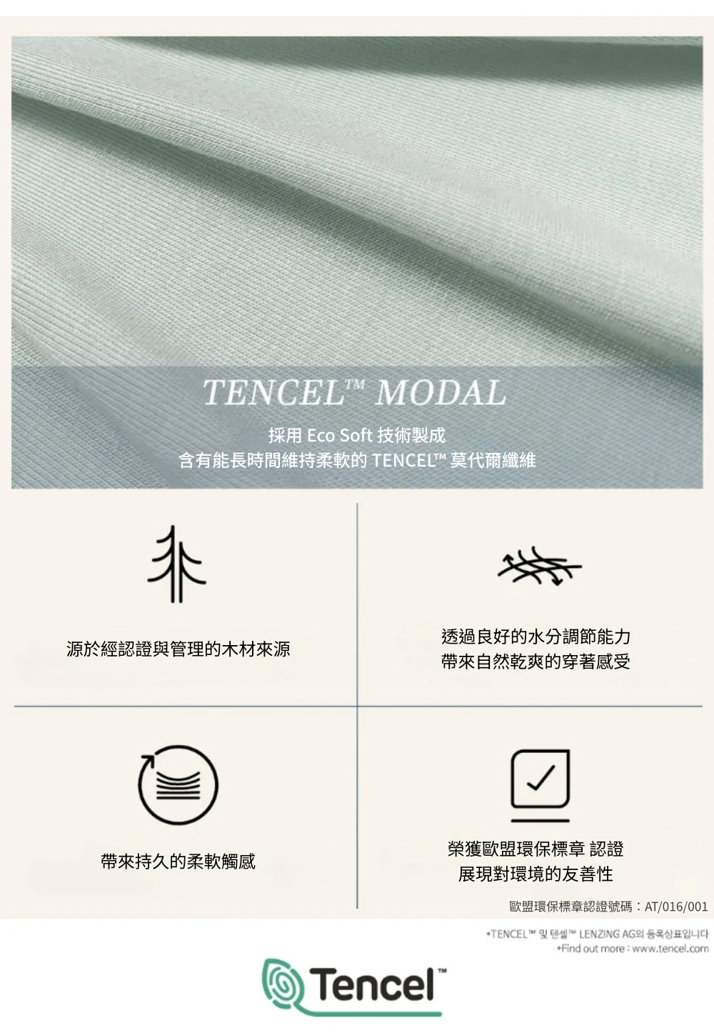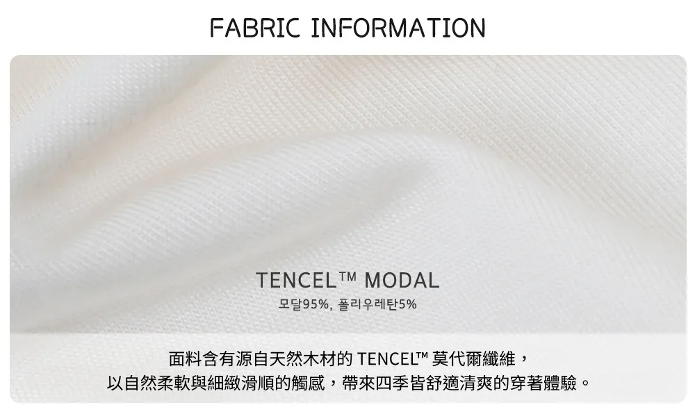 • 奧地利天絲莫代爾材質,親膚柔軟、吸汗透氣