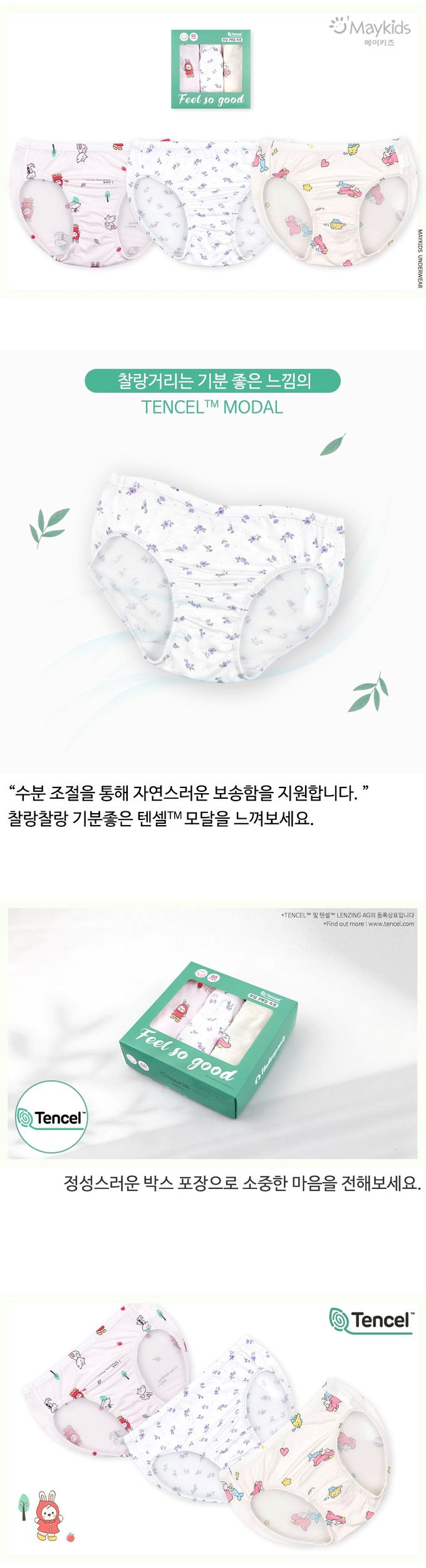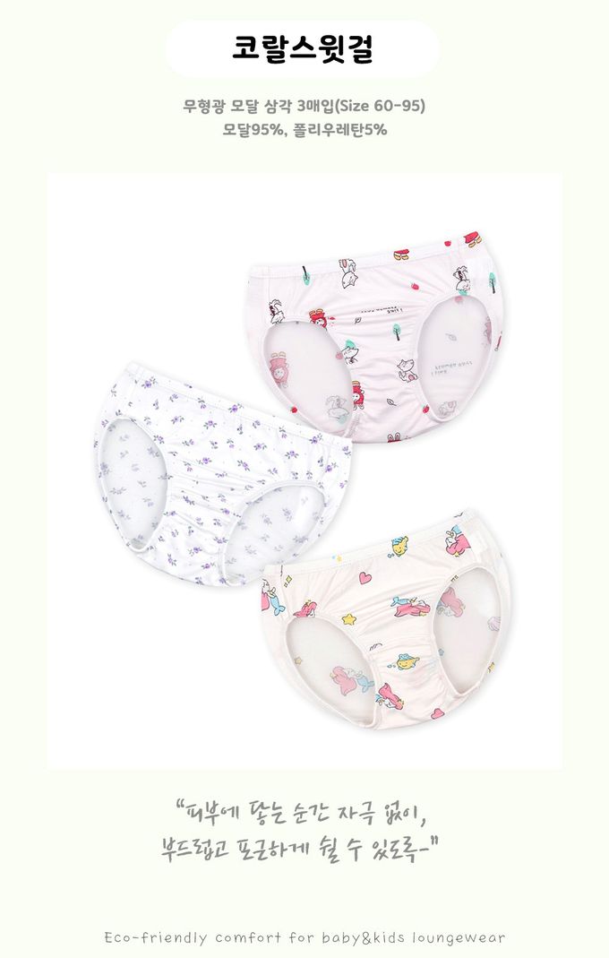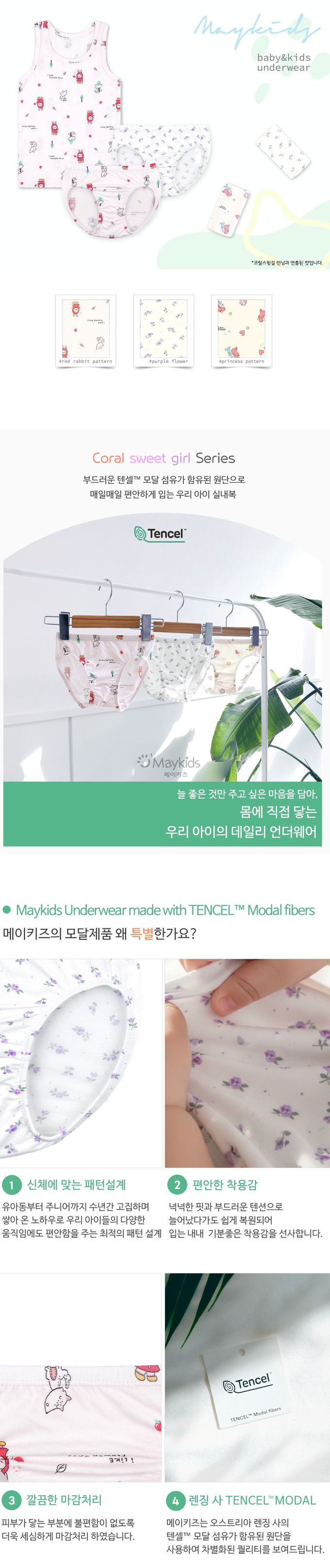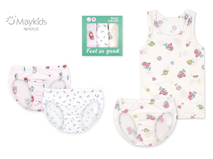 韓國 Maykids - (3入組)女寶天絲莫代爾透氣三角褲-海洋公主X紅帽兔兔-米白X米X淺粉
