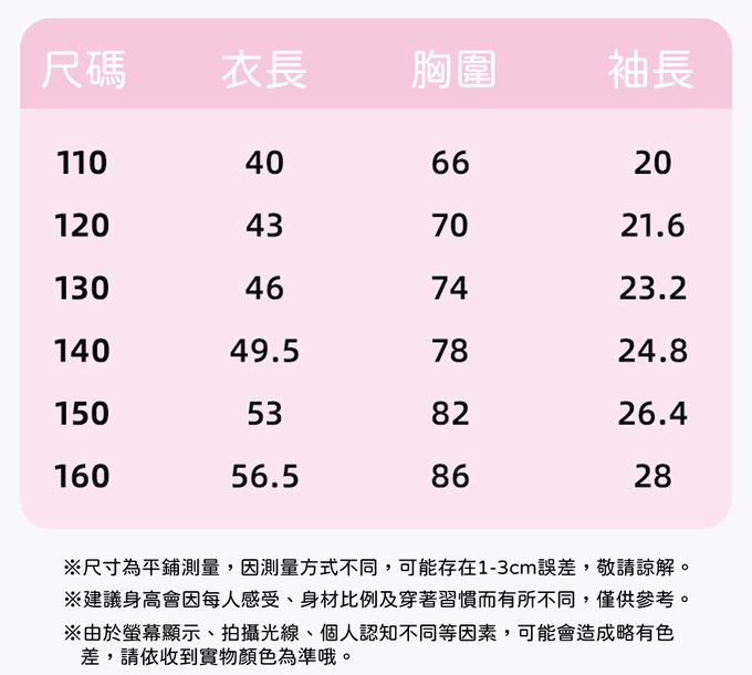 110cm、120cm、130cm、140cm、150cm、160cm