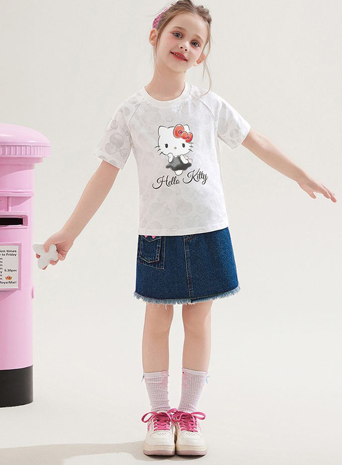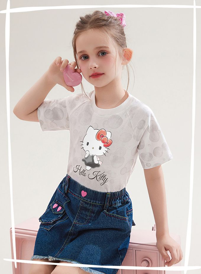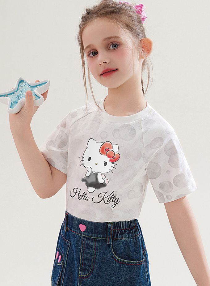 純棉圓領短袖上衣-卡通人物Hello Kitty-灰色