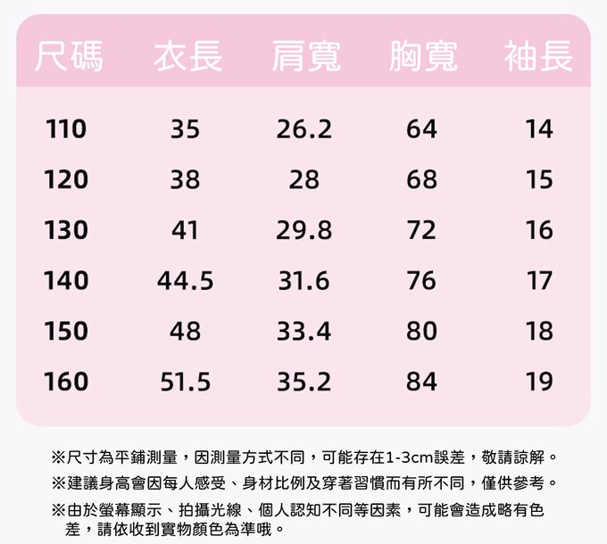 110cm、120cm、130cm、140cm、150cm、160cm