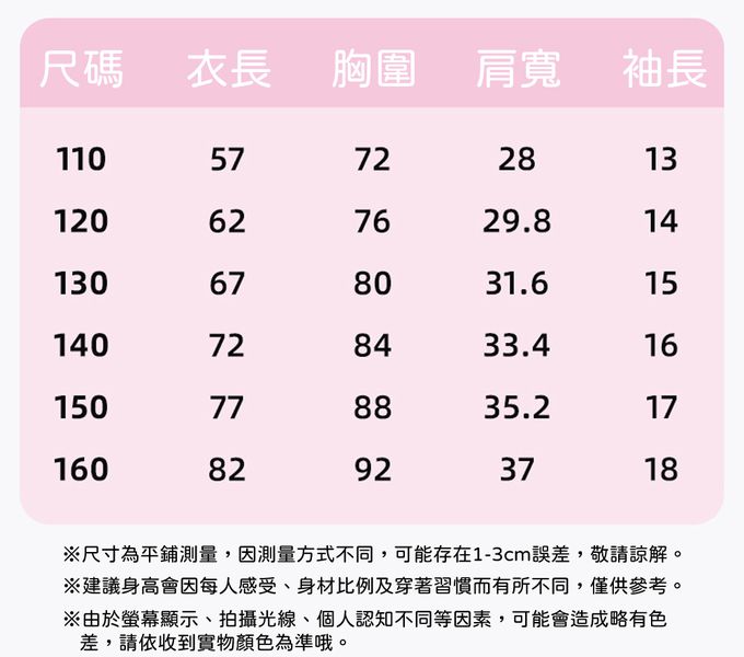 110cm、120cm、130cm、140cm、150cm、160cm