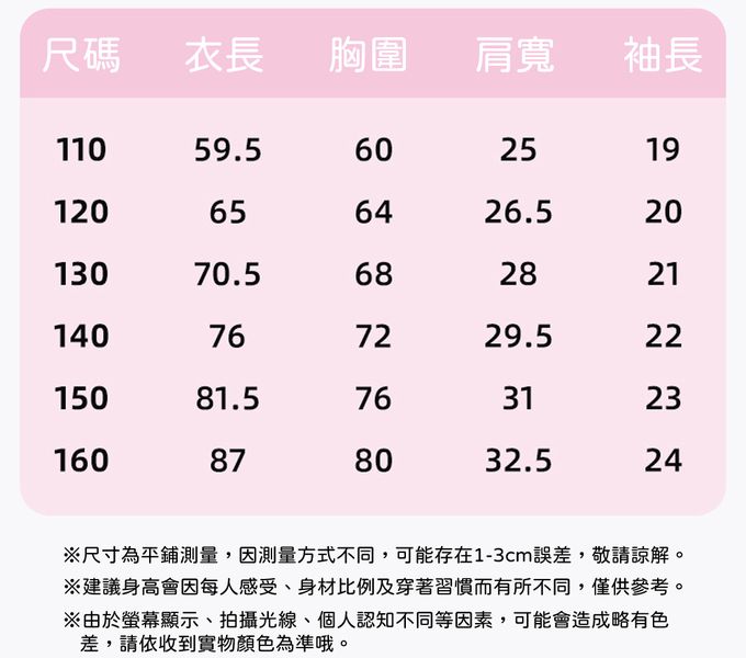 110cm、120cm、130cm、140cm、150cm、160cm