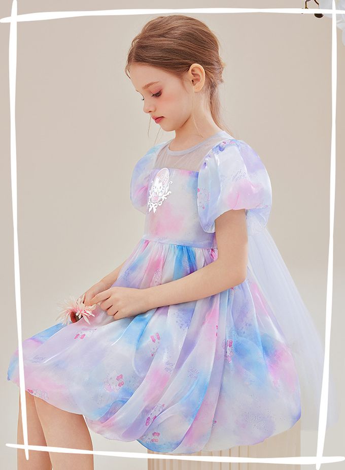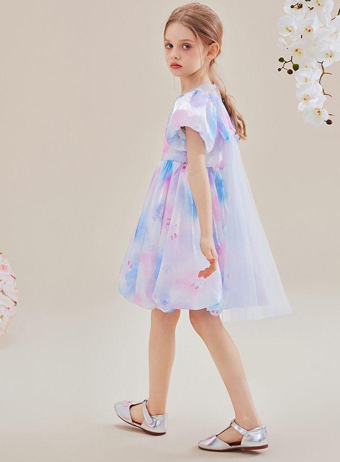 品名:夢幻暈染後蝴蝶結泡泡短袖洋裝