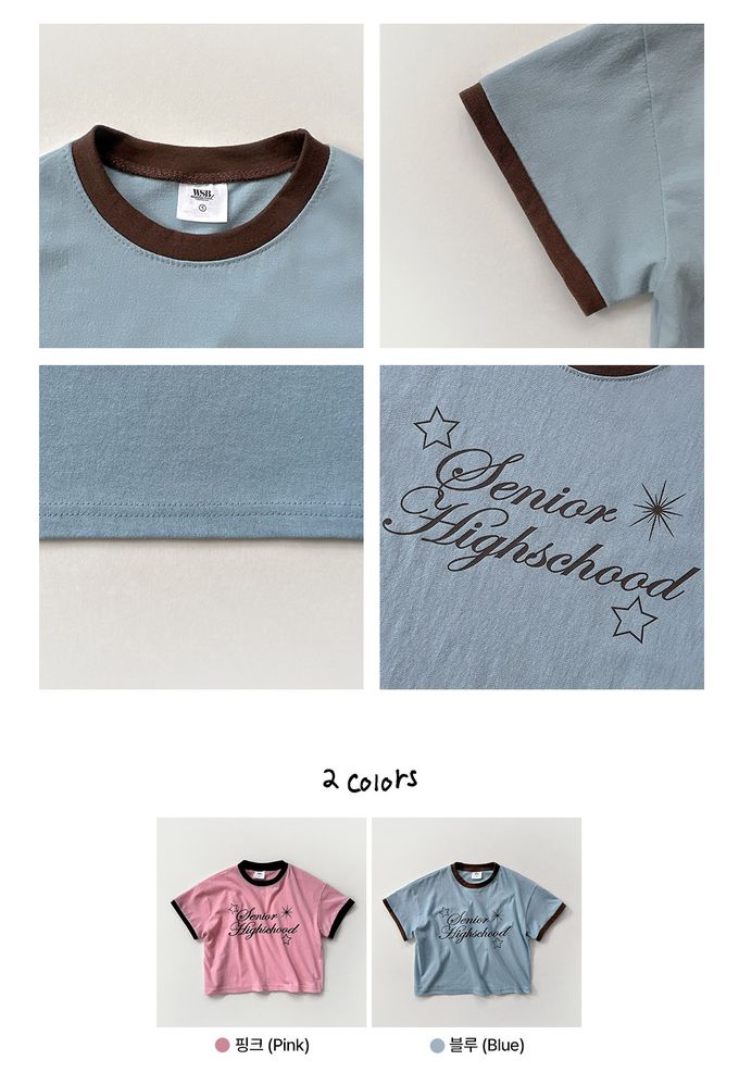 韓國南大門童裝 - W.S.B. 純棉短袖上衣-潮流星星文字-桃粉
