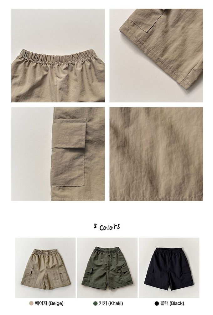 韓國南大門童裝 - W.S.B. 鬆緊腰工裝風格口袋過膝褲-黑