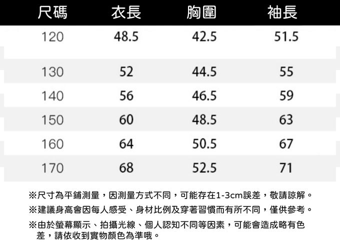 120cm、130cm、140cm、150cm、160cm、170cm