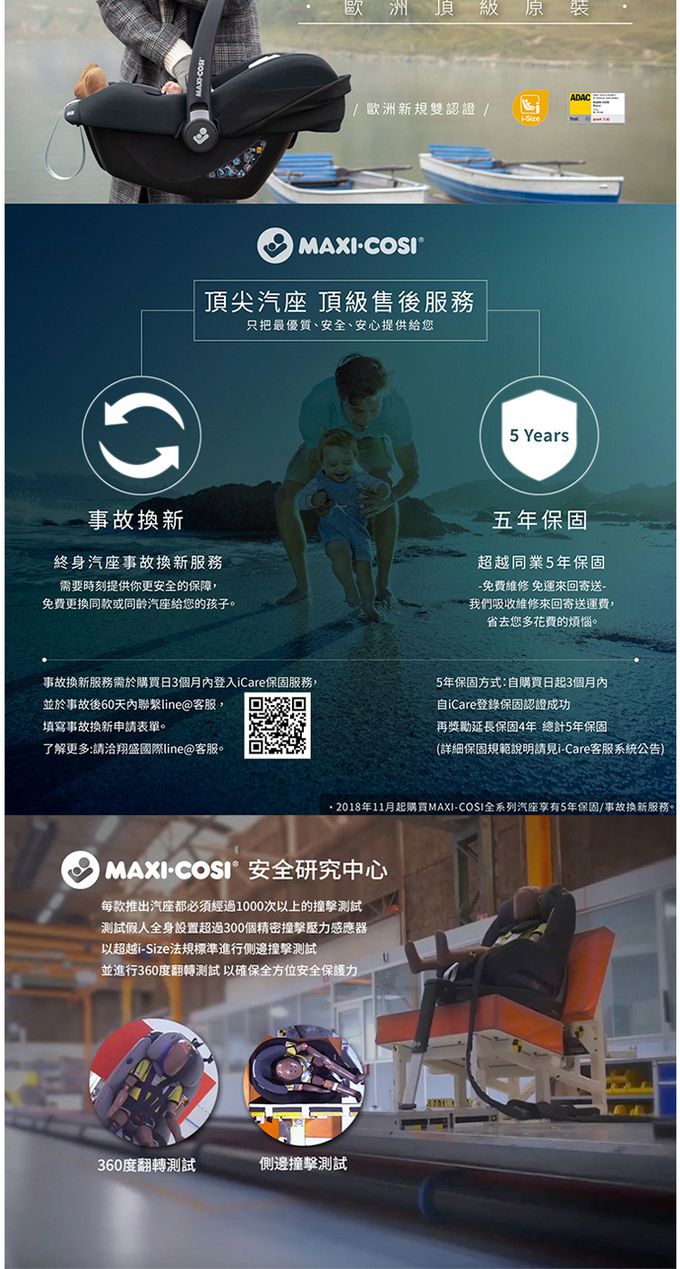 • 保固:購買推車及汽座 3個月內,填寫 i- Care 線上登錄保固,拍照上傳保固卡及購買發票至總代理翔盛國際客服,審核無誤後,即可獲得保固再延長 1年(推車自購買日起算共 2年)。