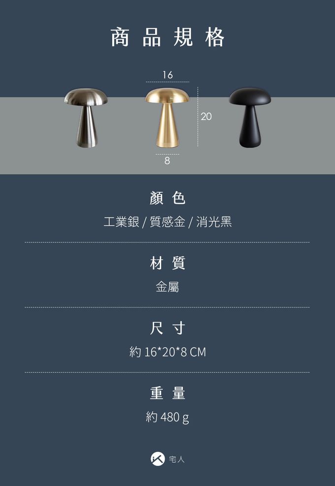 復古金屬鐵件蘑菇燈-F-工業銀