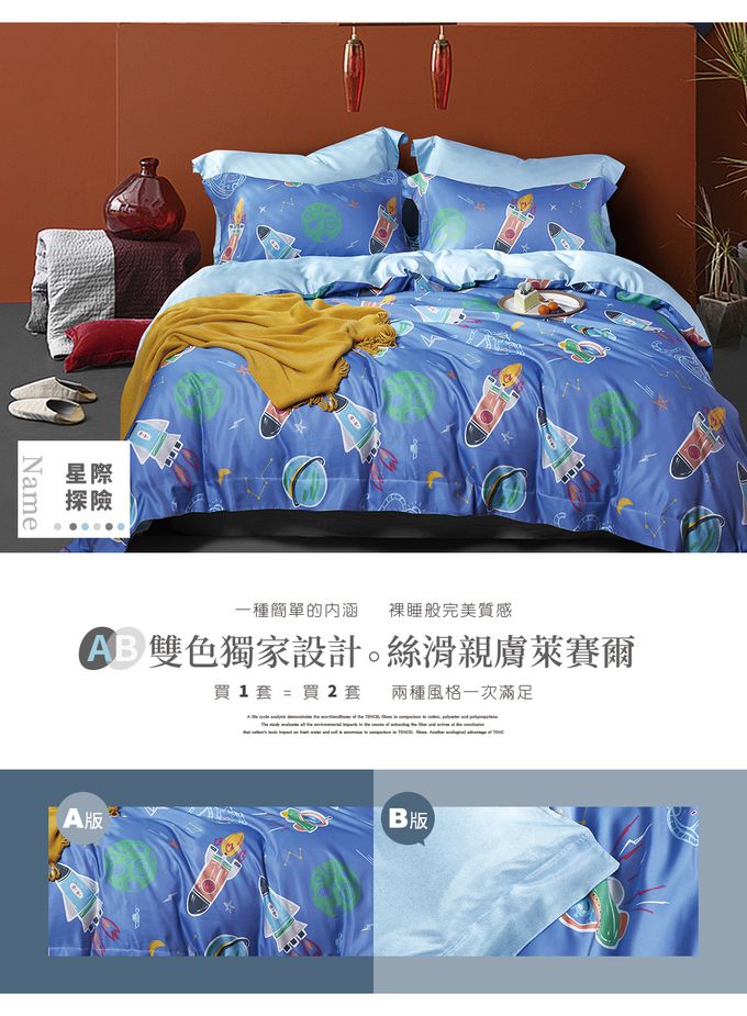 吸濕排汗天絲-星際探險-單人床包被套組(含床包*1+被套*1+枕套*1)