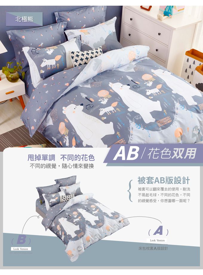 台灣製 極致純棉寢具組-北極熊-雙人四件式床包被套組