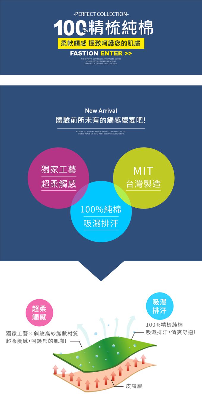 100% 純棉台灣製,吸濕排汗,清爽透氣