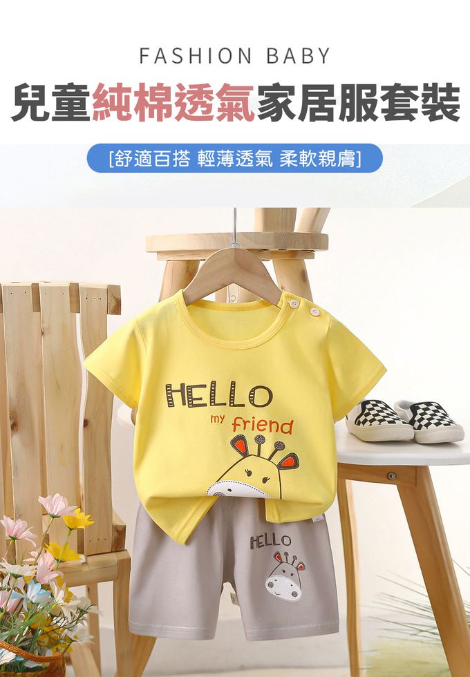 純棉透氣短袖短褲家居服套裝-小牛朋友