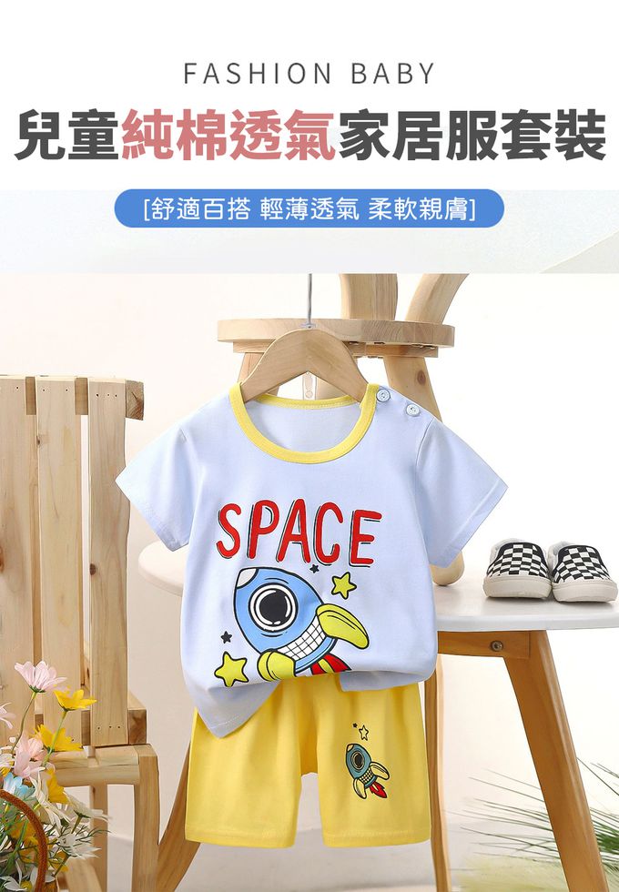 純棉透氣短袖短褲家居服套裝-火箭升空