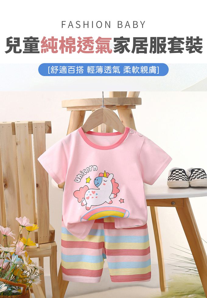 WarmNest - 純棉透氣短袖短褲家居服套裝-彩虹小馬