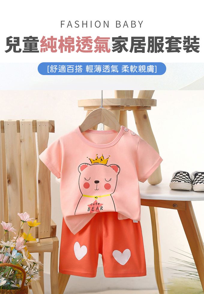 純棉透氣短袖短褲家居服套裝-皇冠小熊