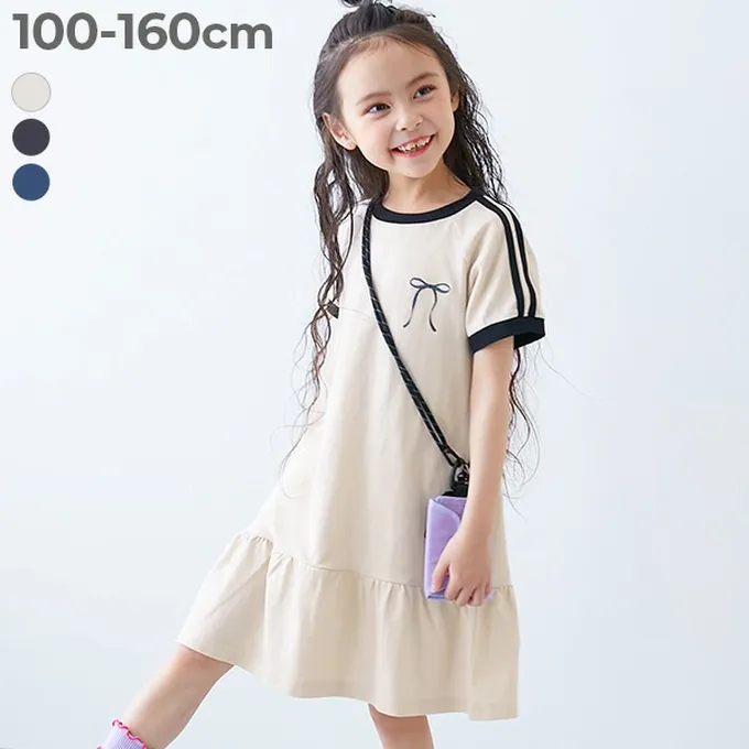 日本 devirock - 純棉舒適運動風短袖洋裝-刺繡蝴蝶結-海軍藍