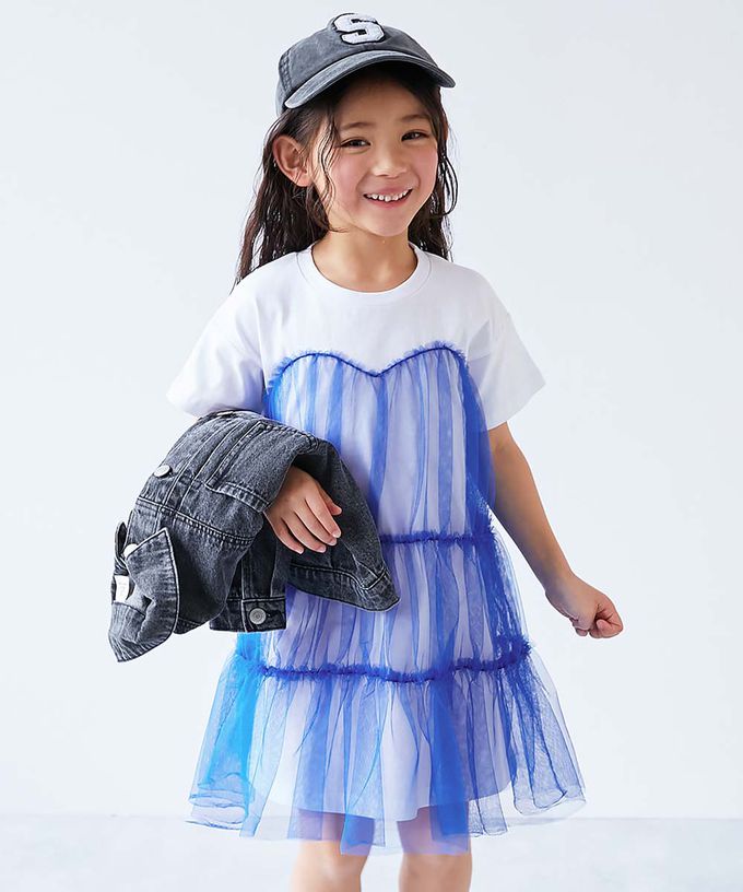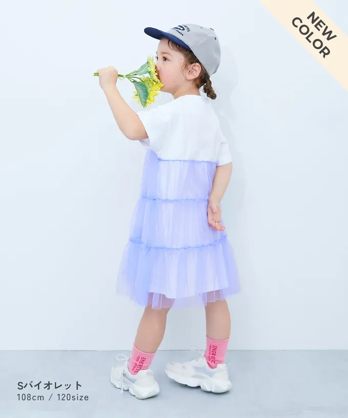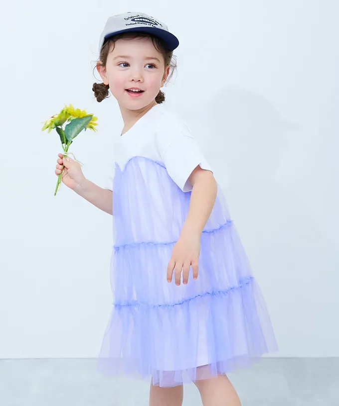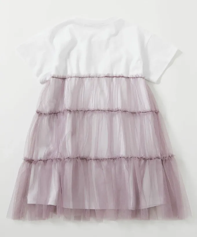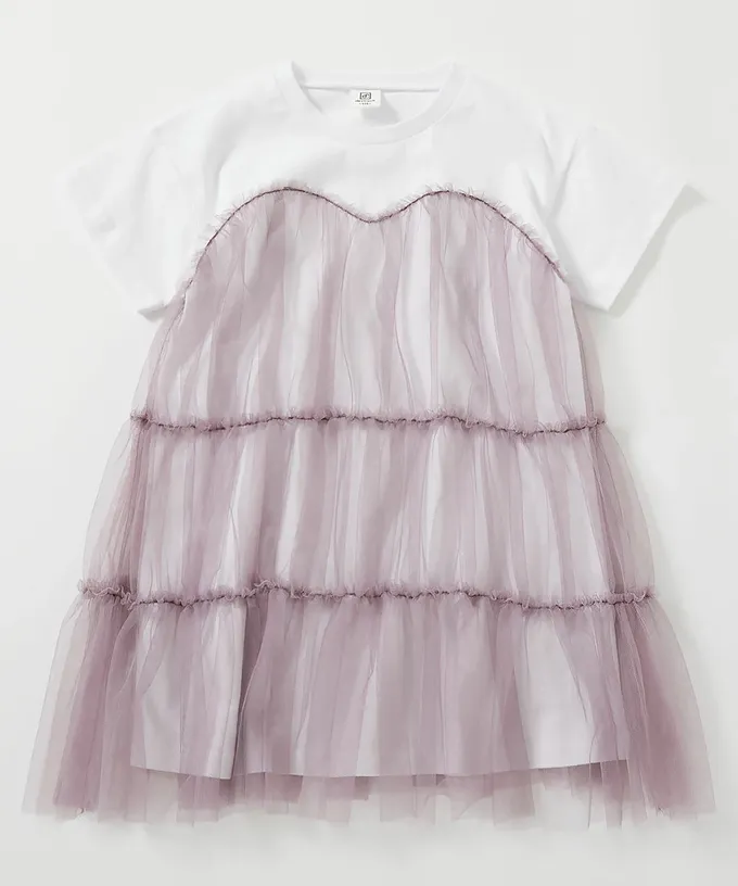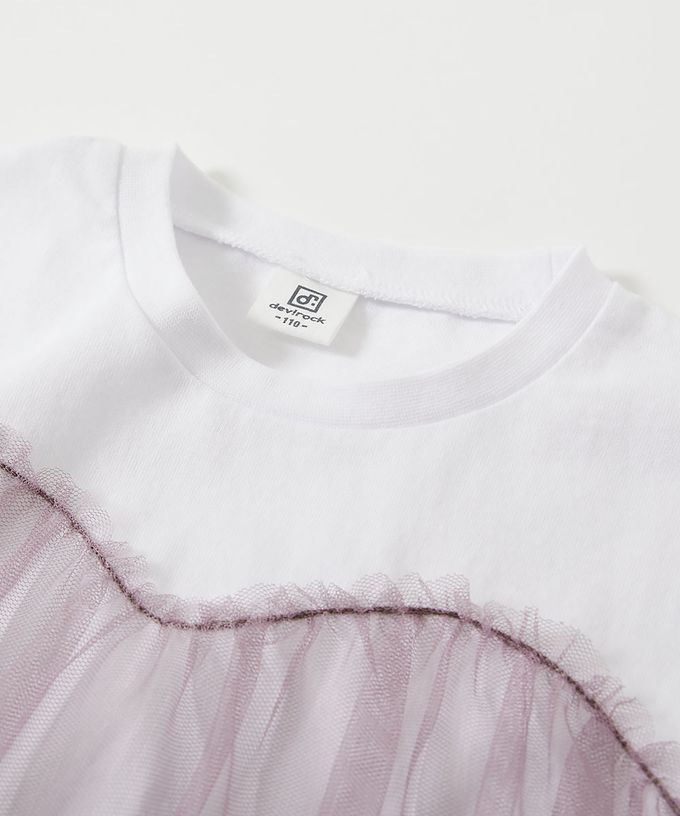 日本 devirock - 柔軟薄紗拼接甜美短袖洋裝-紫羅蘭