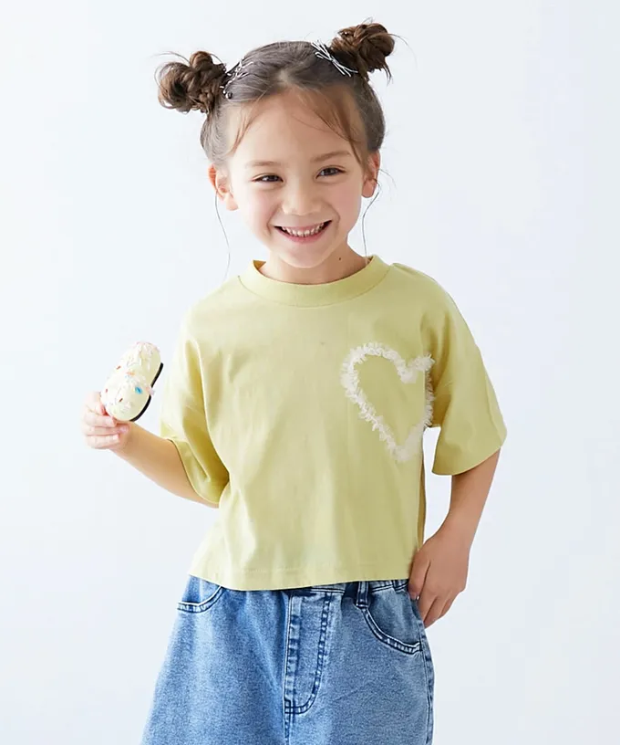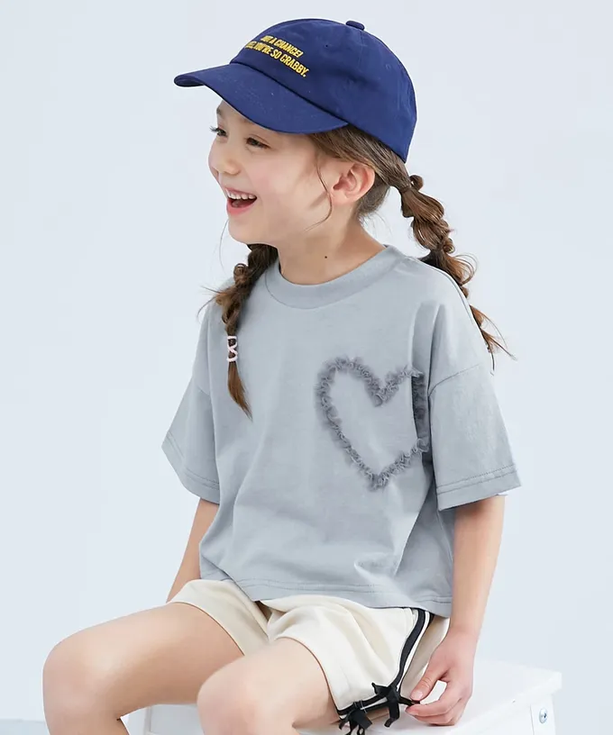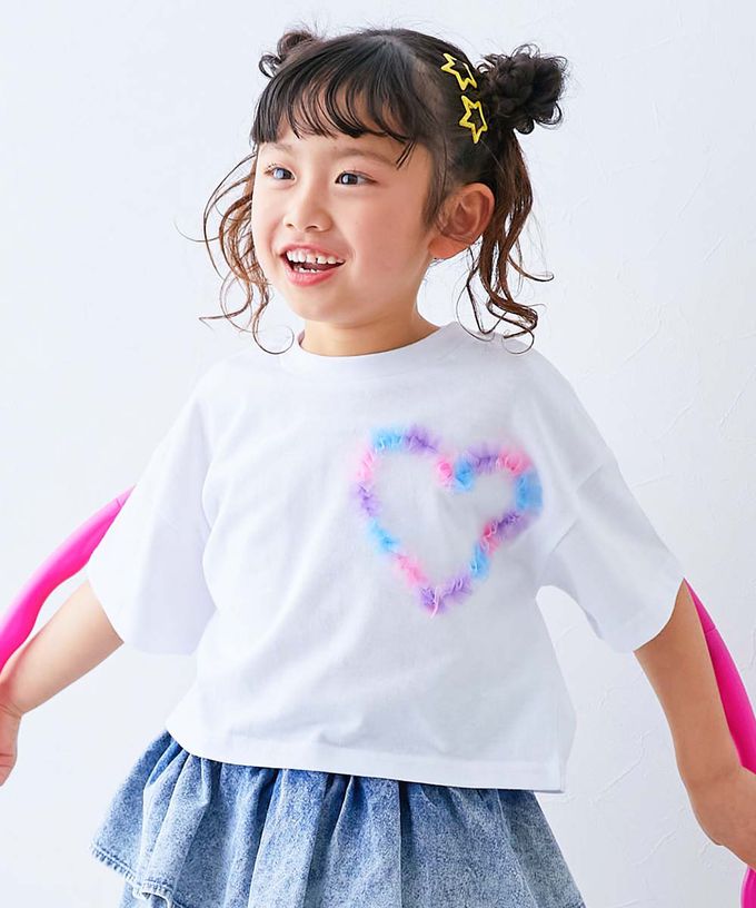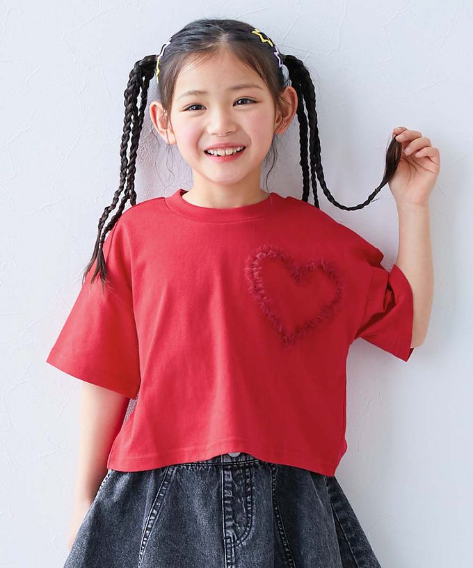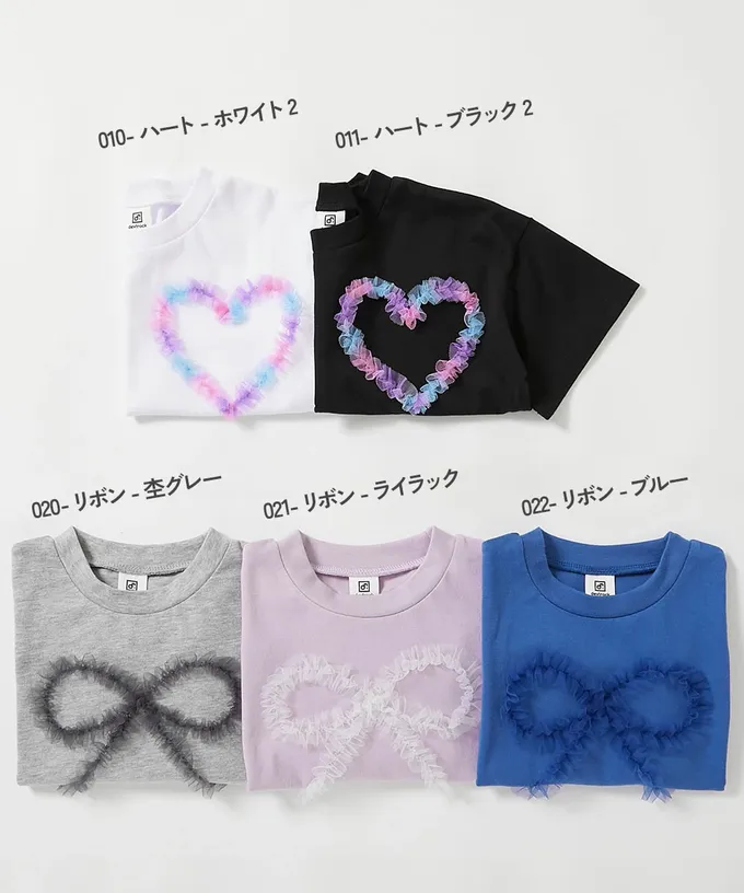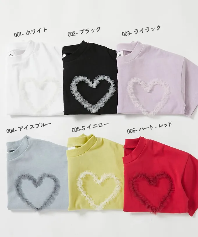 日本 devirock - 俏麗薄紗點綴短袖上衣-愛心-彩色x黑