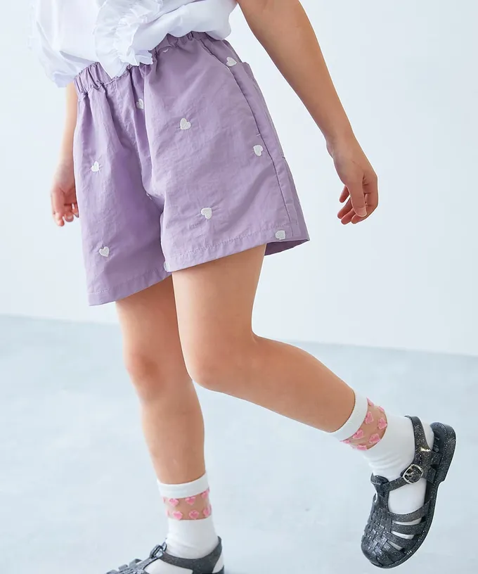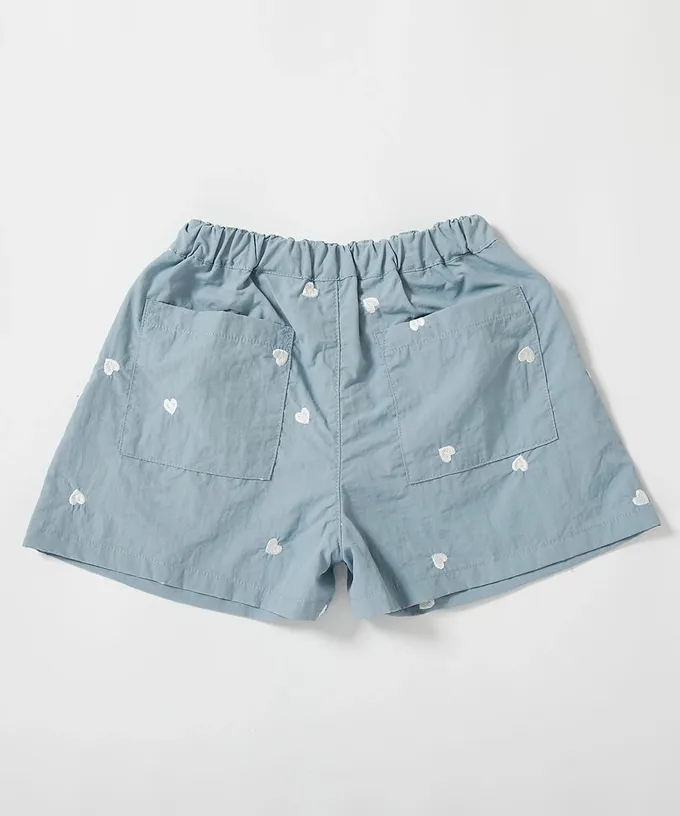 日本 devirock - 水陸二用 輕盈玩水尼龍短褲-愛心刺繡-霧藍