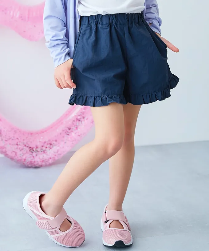 日本 devirock - 水陸二用 可愛荷葉邊玩水短褲-海軍藍