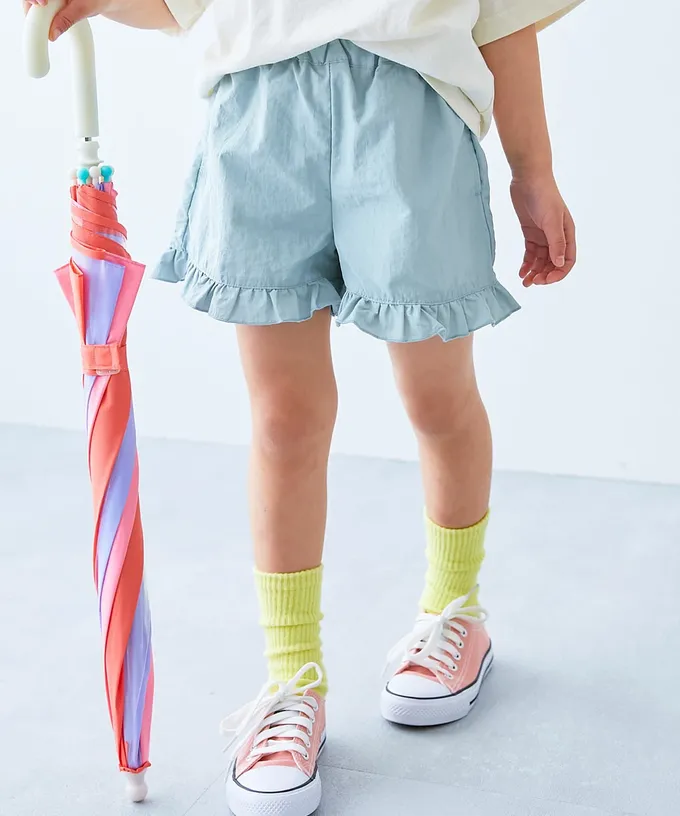 日本 devirock - 水陸二用 可愛荷葉邊玩水短褲-霧淺藍