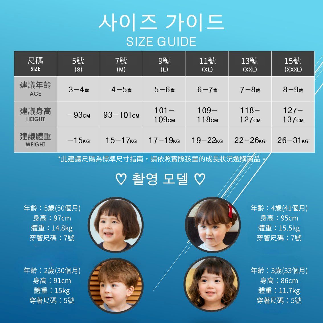 1. 尺寸表單位皆為公分(cm),實際尺寸會因布料彈性、水洗、測量起訖點等因素略有誤差。建議參考孩子平時穿著衣物尺寸進行選購。2. 第一次穿之前,建議單獨手洗。3. 建議以冷水清洗,以免造成移染或掉色。4. 若含牛仔布、有色布料容易互相染色,請分開或單獨洗滌,以免相互移染。(深淺色也請分開洗滌)請使用中性洗劑,浸泡時間不宜過長。 5. 衣物若含圖案、印花等設計均建議手洗;如需機洗,請務必將衣服翻面放入洗衣網、再放洗衣機,以免刮損圖樣。(若有標註不可機洗或乾洗,請勿機洗、乾洗)6. 請勿使用漂白劑、螢光增白劑及衣物柔軟劑,以免破壞布料或導致掉色。7. 洗滌後立刻晾乾,勿使用烘衣機。過分烘乾可能會破壞織物纖維、導致衣物收縮。如有熨燙需求,請低溫熨燙。8. 模特實穿照因拍攝環境條件因素,與實品之間可能會存在色差,且因每台電腦、手機或平板等設備之螢幕亮度、解析度不同,請參考商品平拍圖、並以實品顏色為準,謝謝媽咪爸比們的體諒。