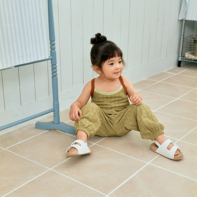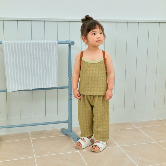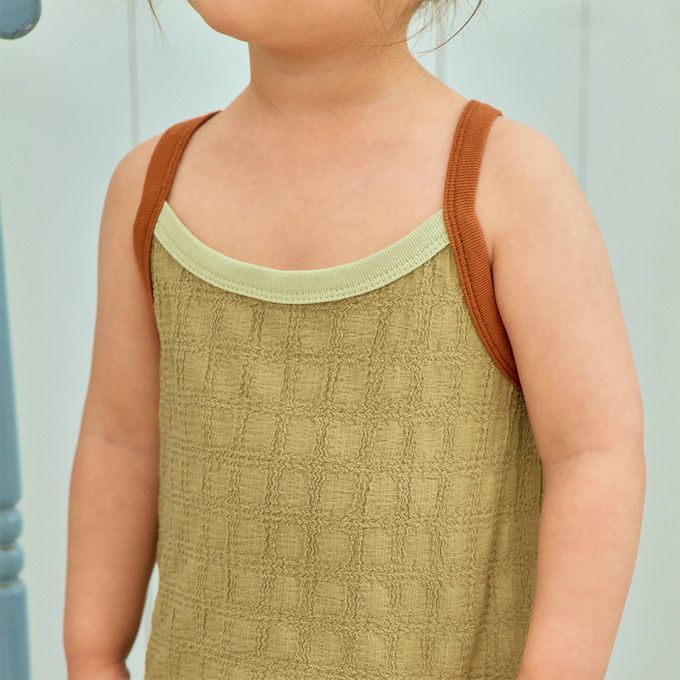 韓國南大門童裝 - First Blue 清爽方格壓紋拼色細肩背心-抹茶綠