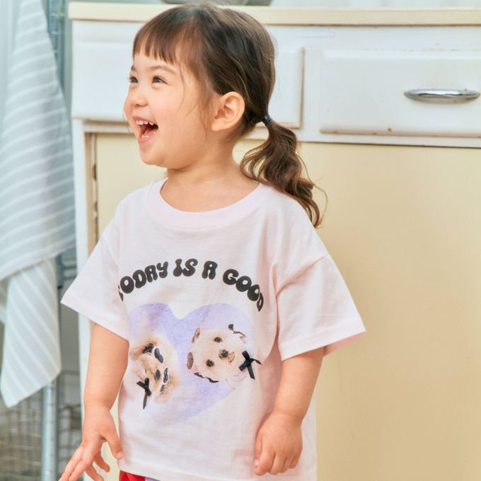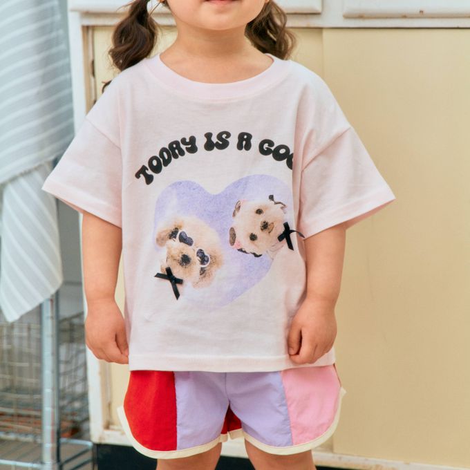 韓國南大門童裝 - First Blue 愛心墨鏡狗狗純棉短袖上衣-淺粉