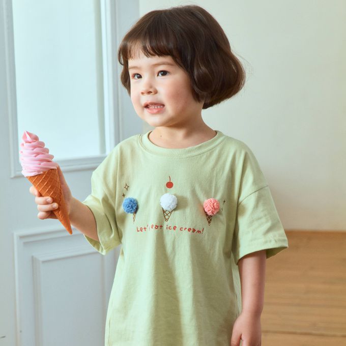 韓國南大門童裝 - First Blue 球球甜筒純棉短袖上衣-綠