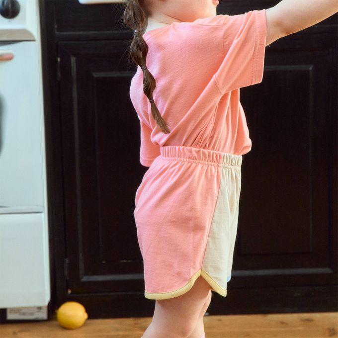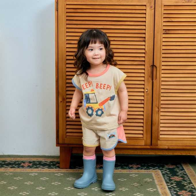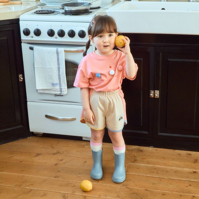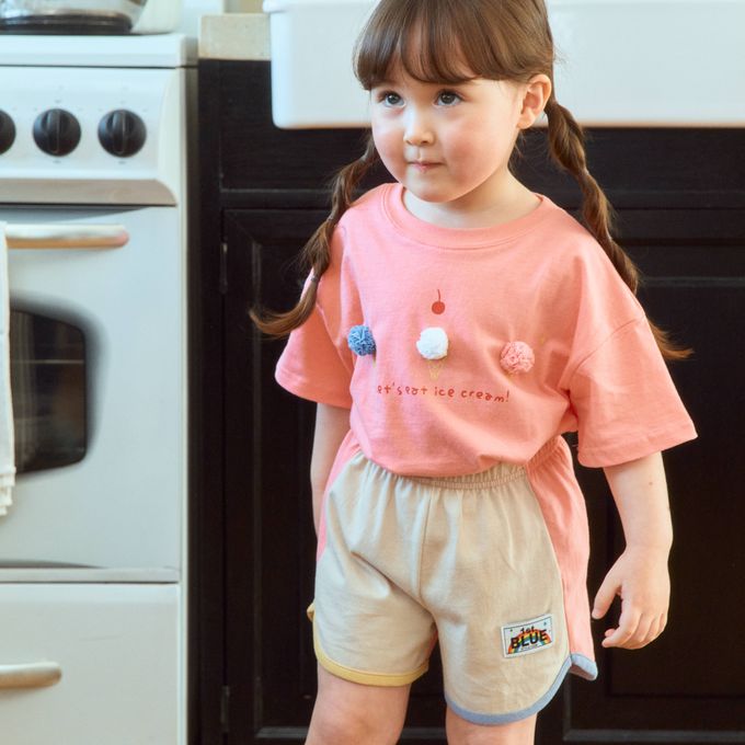 韓國南大門童裝 - First Blue 鬆緊腰拼色純棉短褲-卡其杏X粉