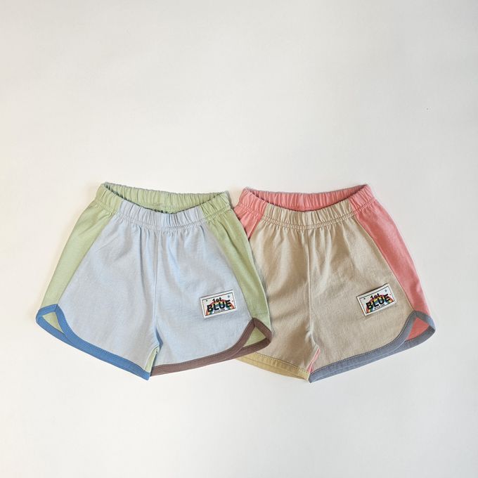 • 品名:First Blue 鬆緊腰拼色純棉短褲