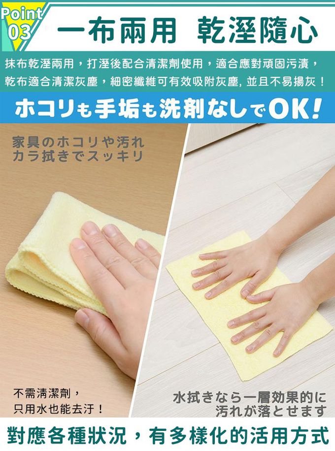 注意事項:1.商品到貨享鑑賞期之權益,鑑賞期並非試用期,辦理退貨商品必須是全新狀態且紙箱及商品配件包裝須完整。因個人衛生考量,一經拆封恕不接受退換貨 2.本商品內容不包含擺飾物品 3.網頁商品會因面板螢幕解析度不同,造成圖片顏色呈現略有不同,請以實品顏色為準 4.商品為人工丈量略有1~3公分內誤差,請以實品為主。 5.請勿將本產品置於火源附近 6.請勿用於規定用途以外的其他地方。 7.請勿長時間放水裡浸泡,否則容易變形。 8.請勿於漂白、消毒產品同使用,可能會使抹布掉色斑駁。 9.請放在陰涼避光處,避免陽光直射,可能會造成掉色。 10.請勿用於堅硬銳利物體表面,可能造成抹布變形破損。 11.使用後請徹底淸洗抹布,避免洗劑殘留。 12.洗淨後在通風處懸掛晾曬,避免細菌滋生。