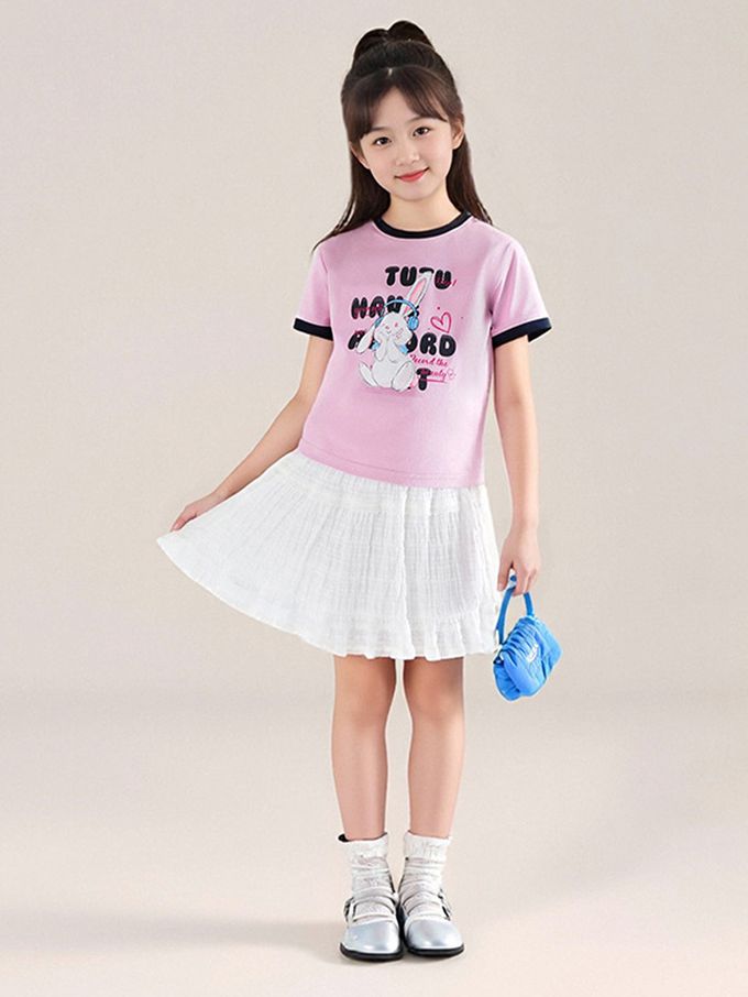 涼感撞色印花短袖上衣/T恤-粉紫色