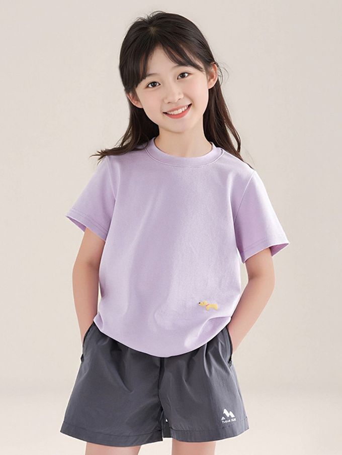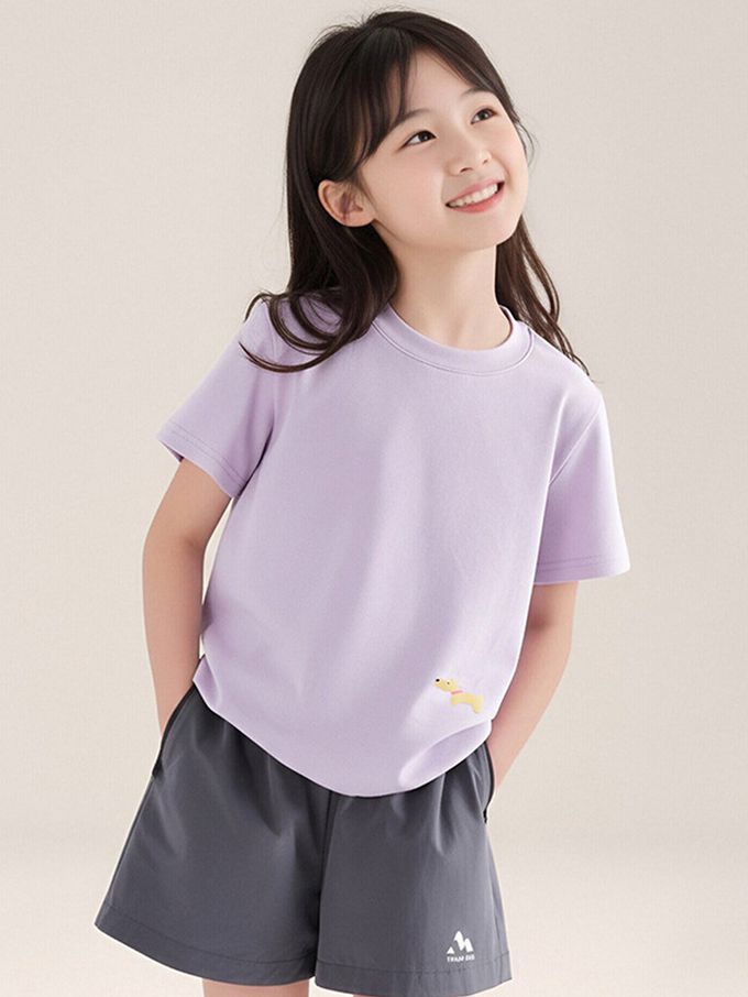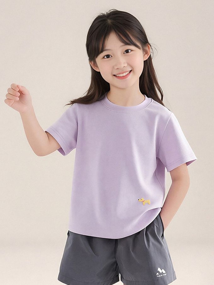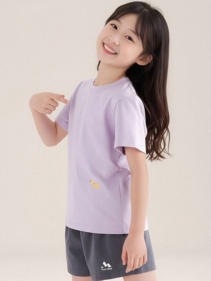 軟綿綿百搭短袖上衣/T恤-小狗印花-紫色