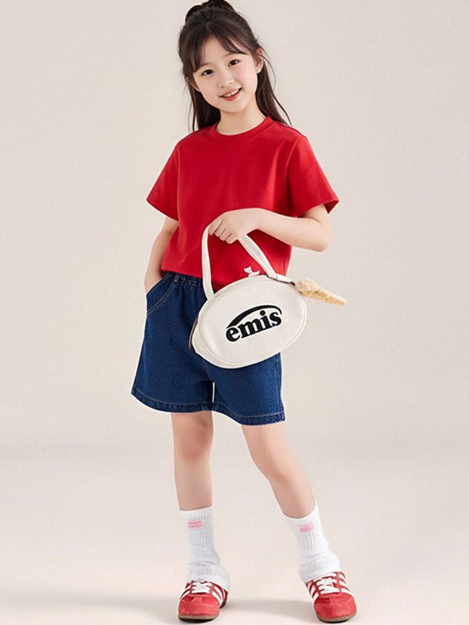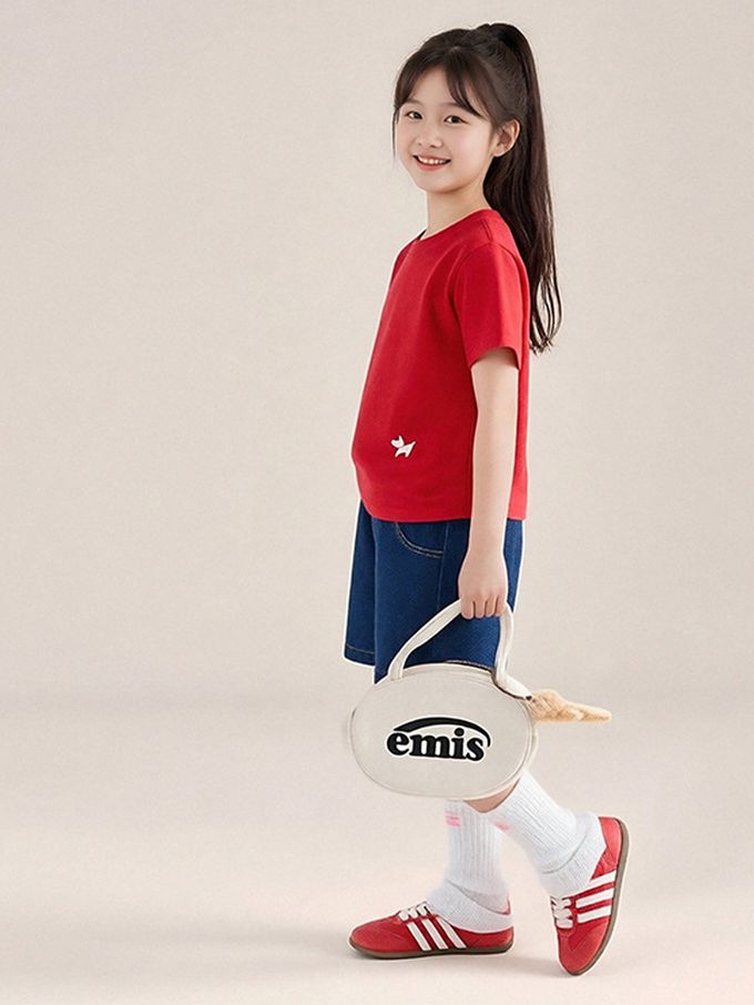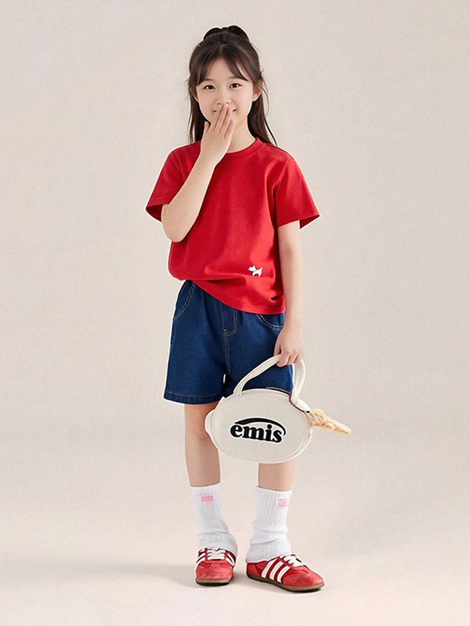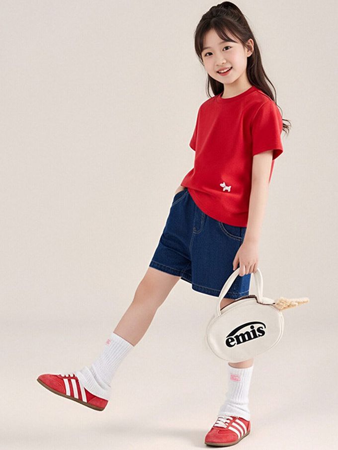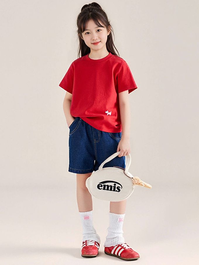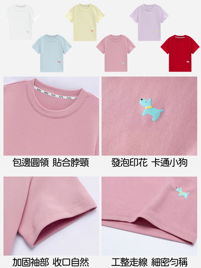 軟綿綿百搭短袖上衣/T恤-小狗印花-紅色