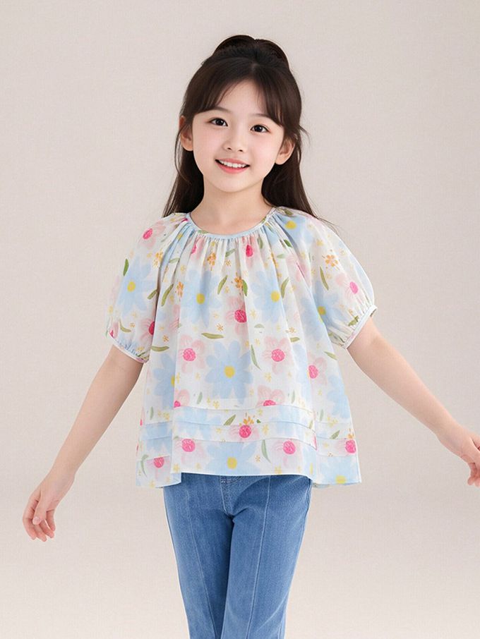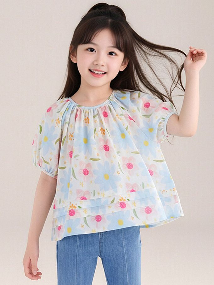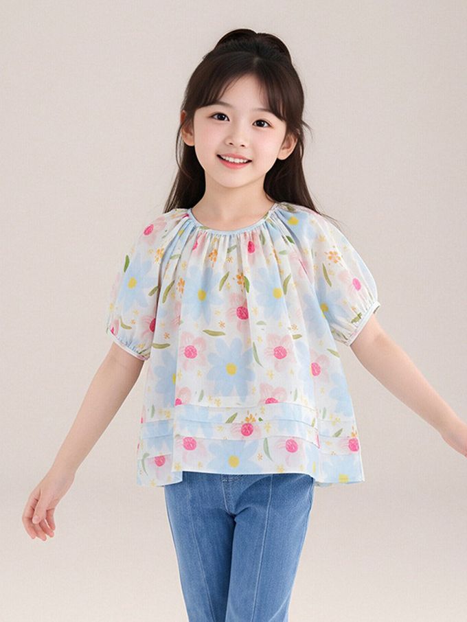 品名:純棉清新印花澎澎短袖上衣