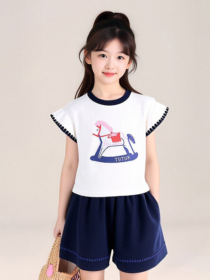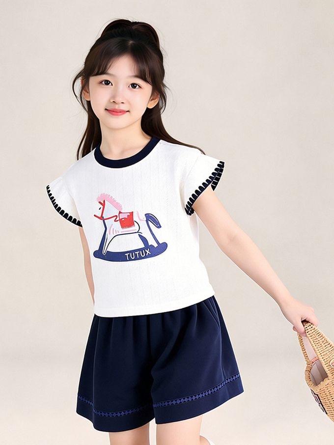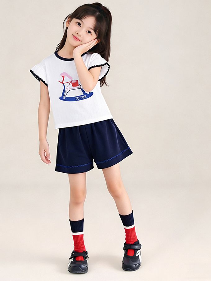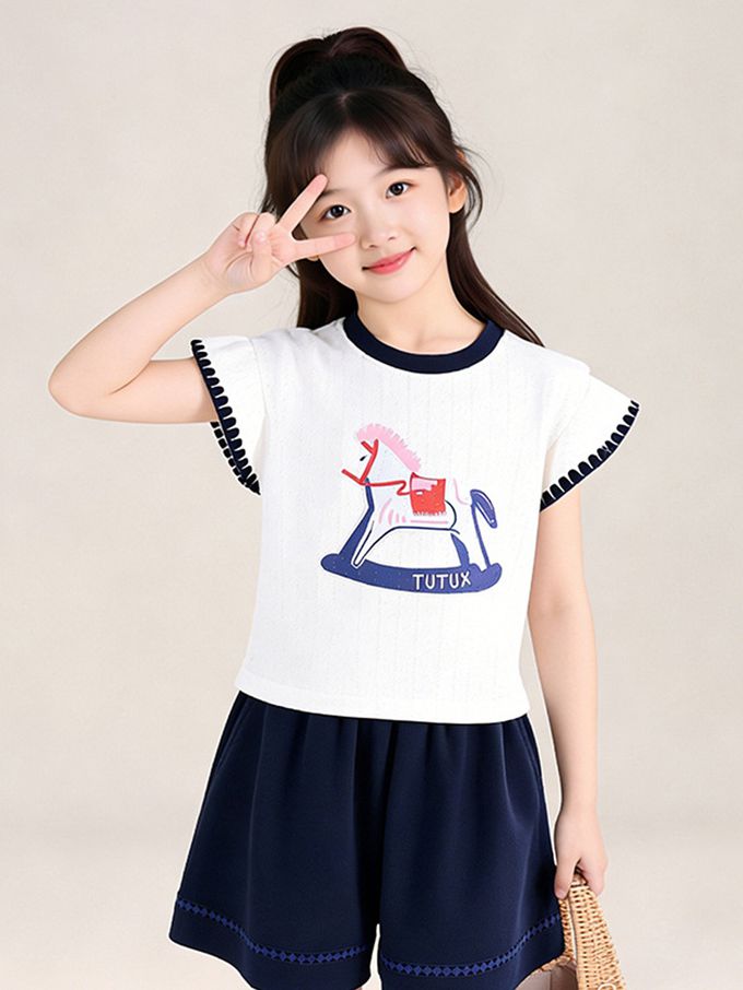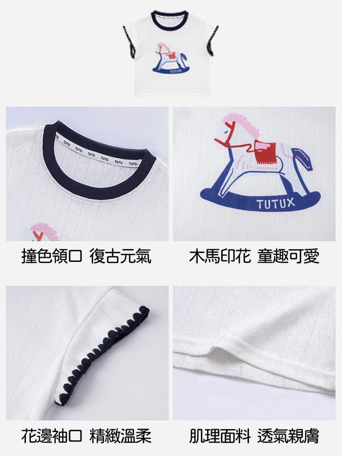 愛心鏤空撞色花邊小飛袖上衣-木馬-白色
