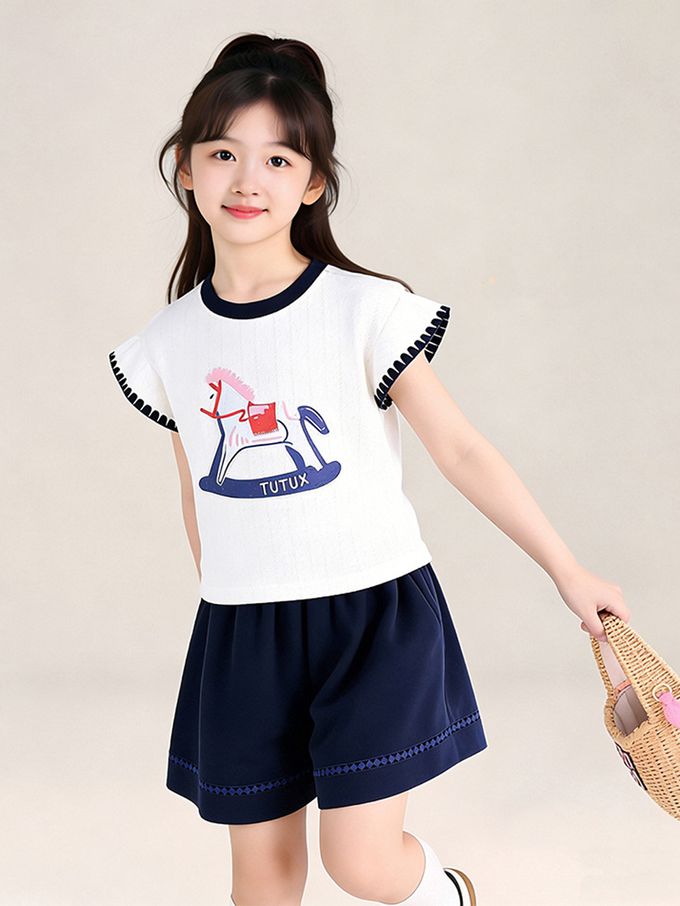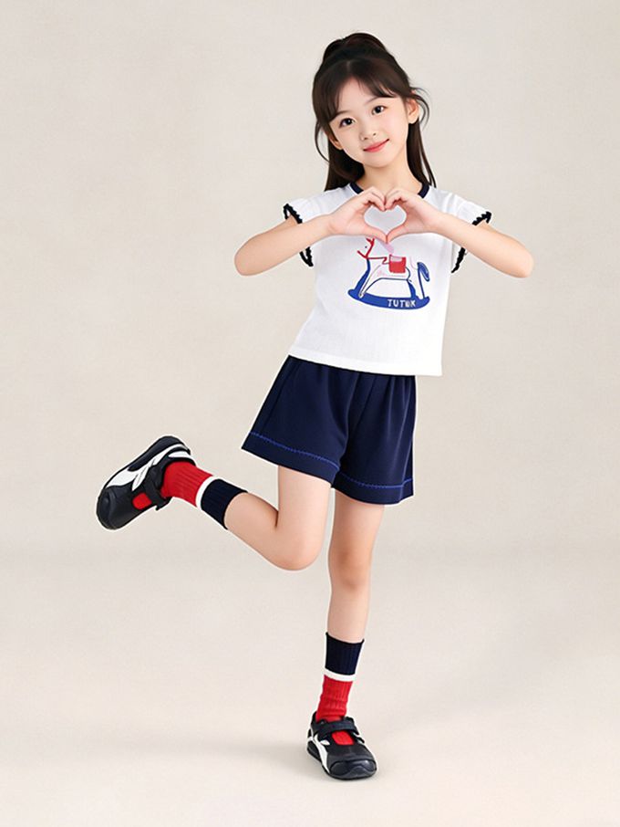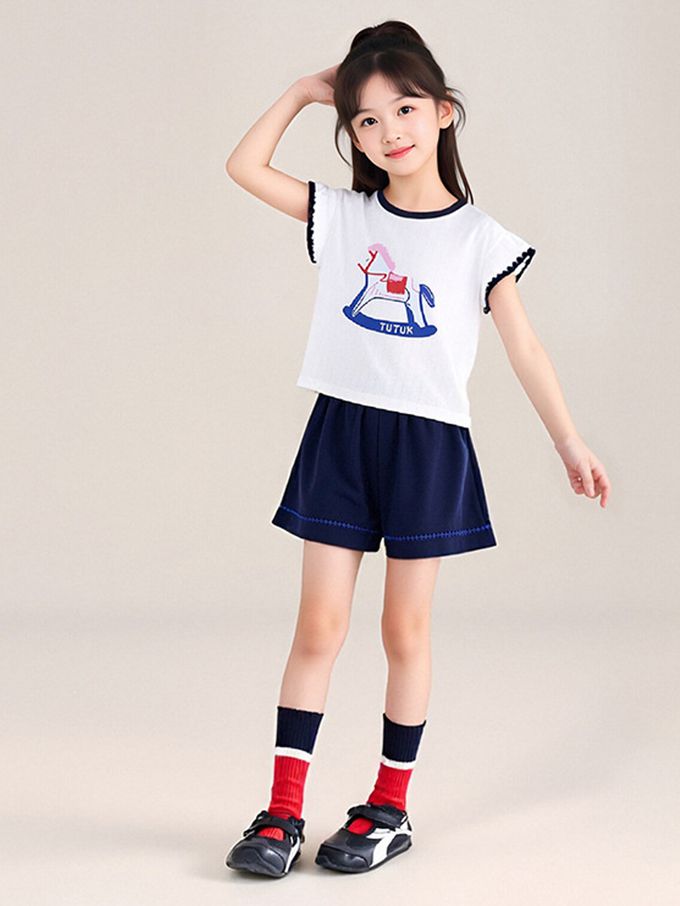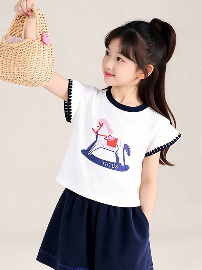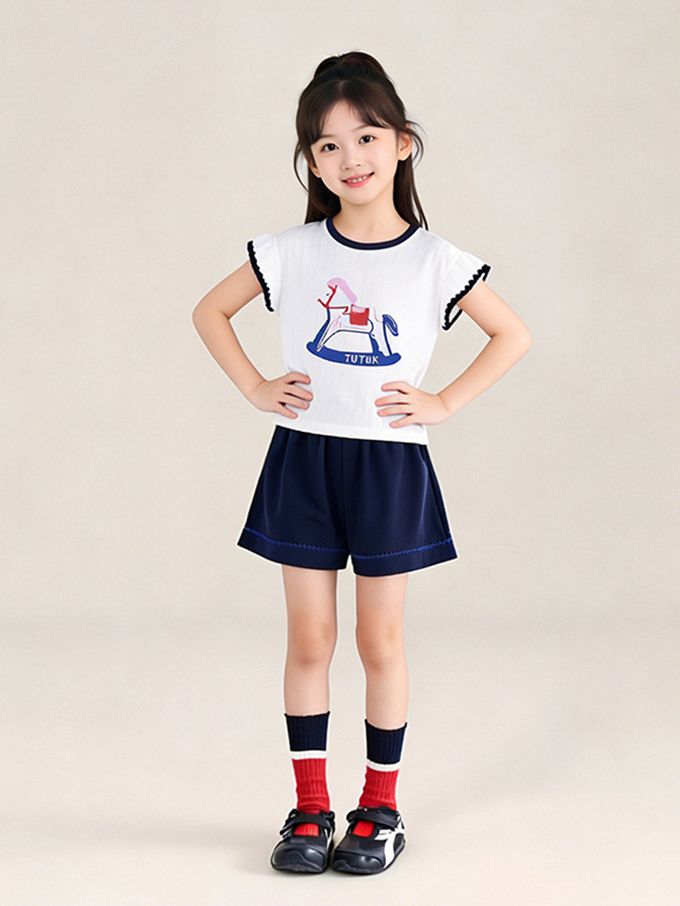 愛心鏤空撞色花邊小飛袖上衣-木馬-白色