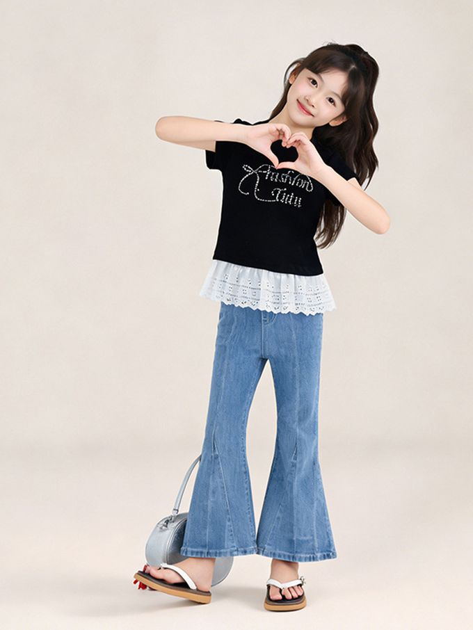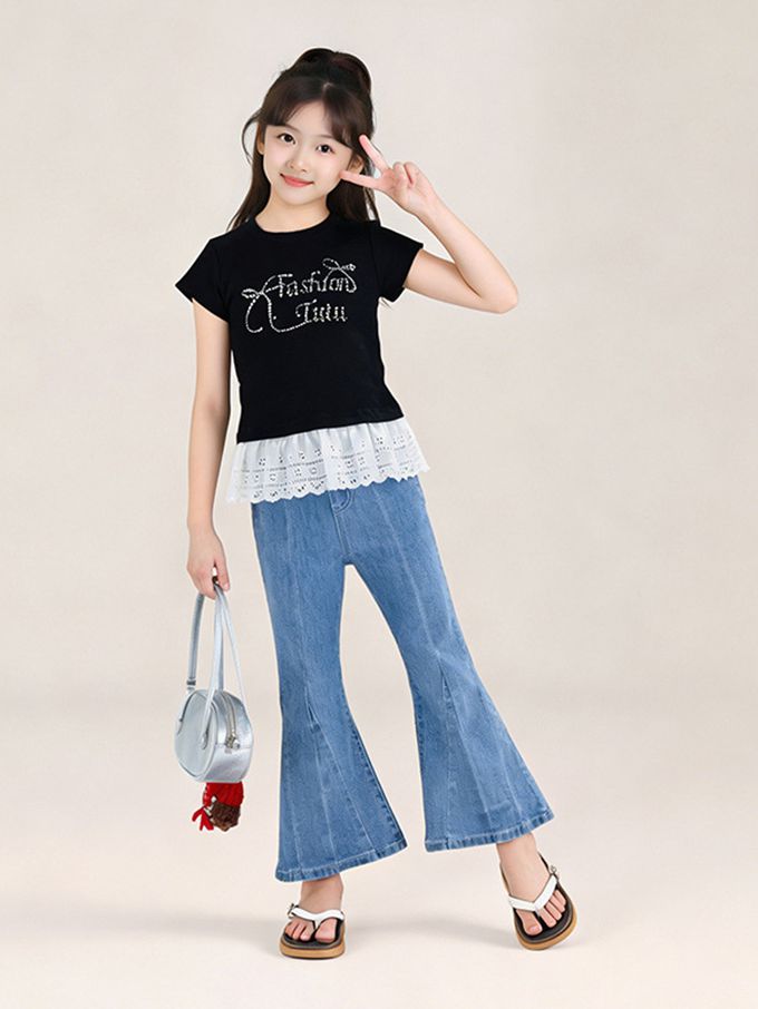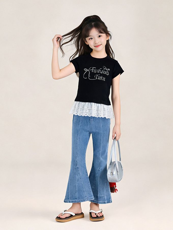 品名:甜美貼鑽蕾絲拼接短袖上衣