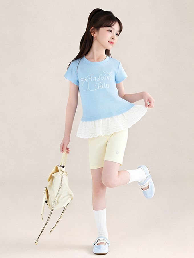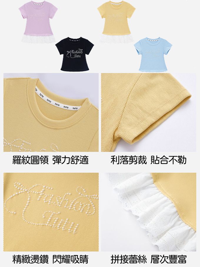 品名:甜美貼鑽蕾絲拼接短袖上衣