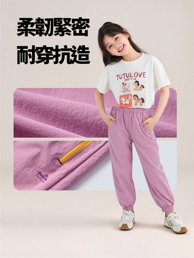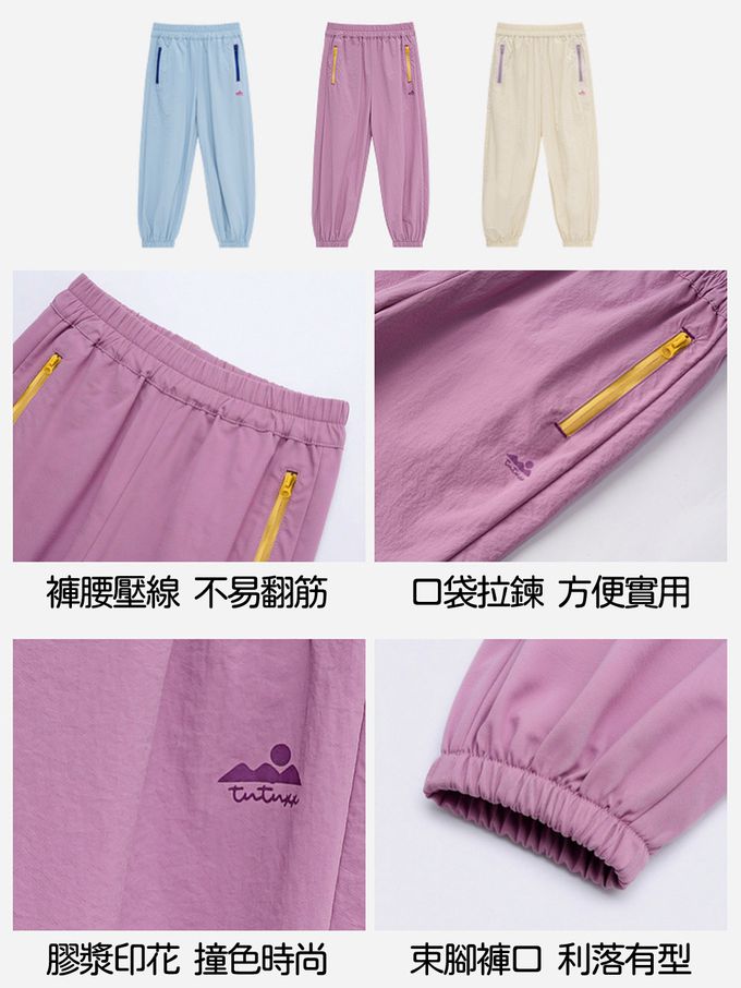UPF50+輕量透氣防蚊褲-撞色拉鍊-粉紫