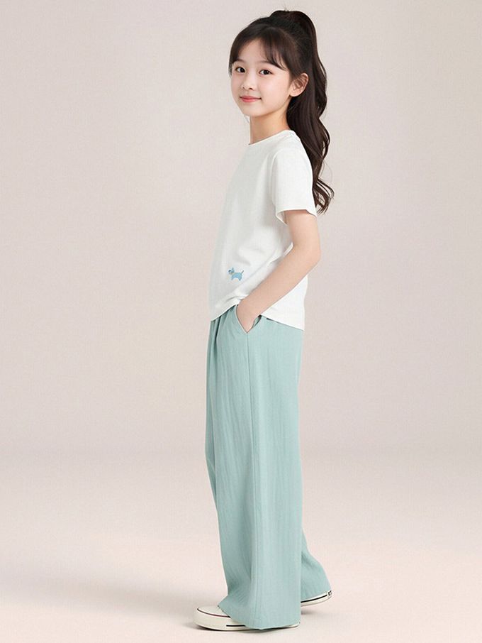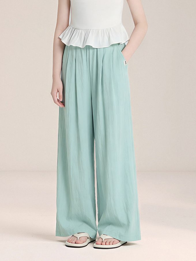 輕量透氣寬褲-清水藍