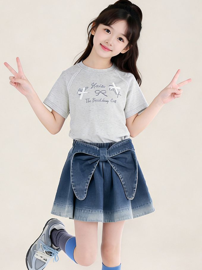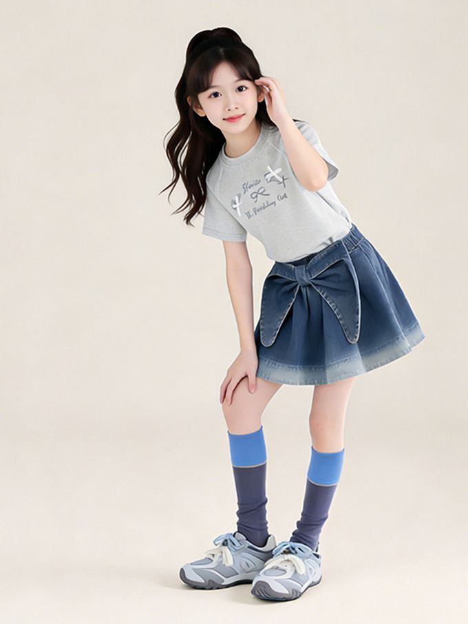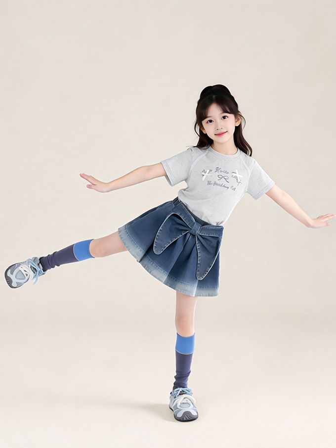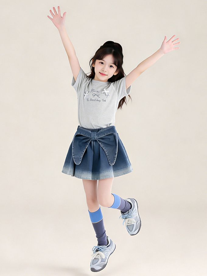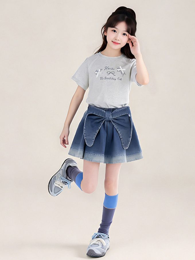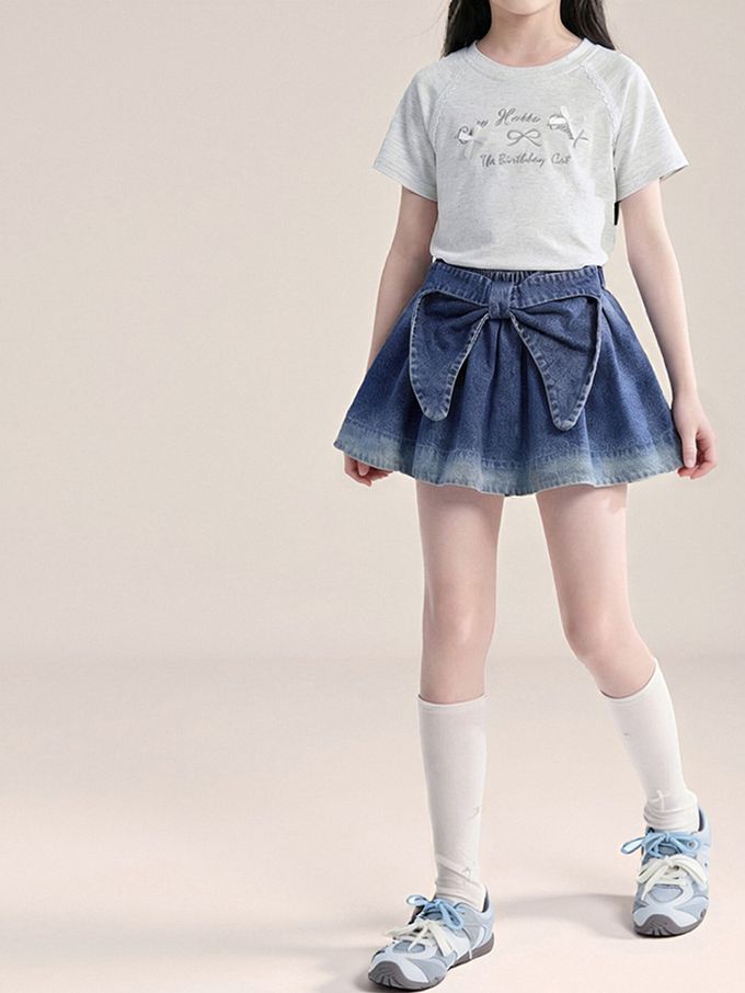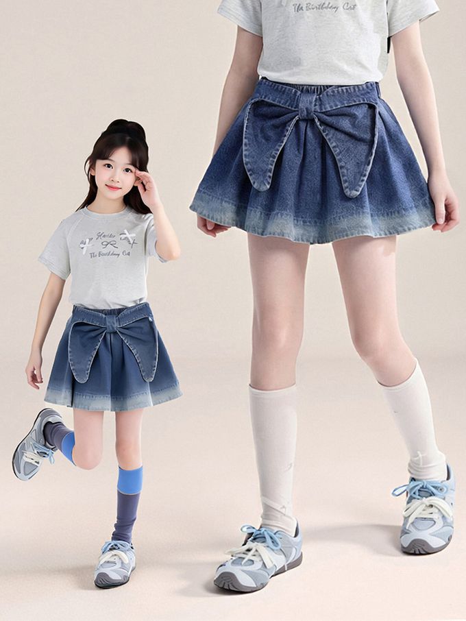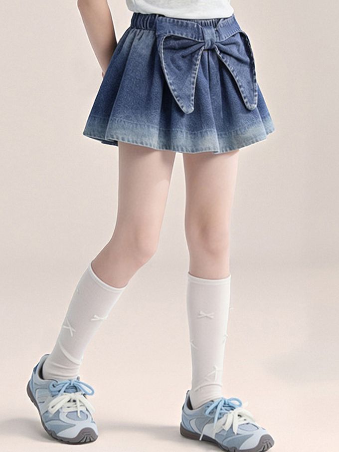 前後兩穿牛仔短裙-蝴蝶結-漸層藍