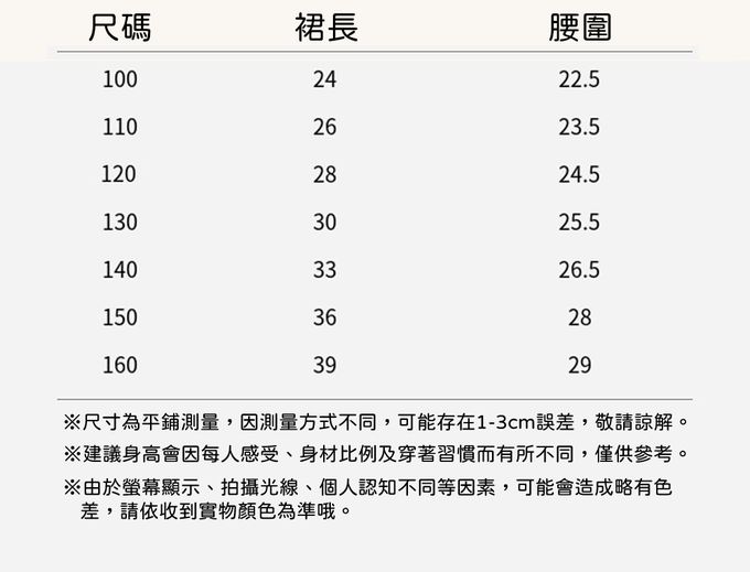 100cm、110cm、120cm、130cm、140cm、150cm、160cm