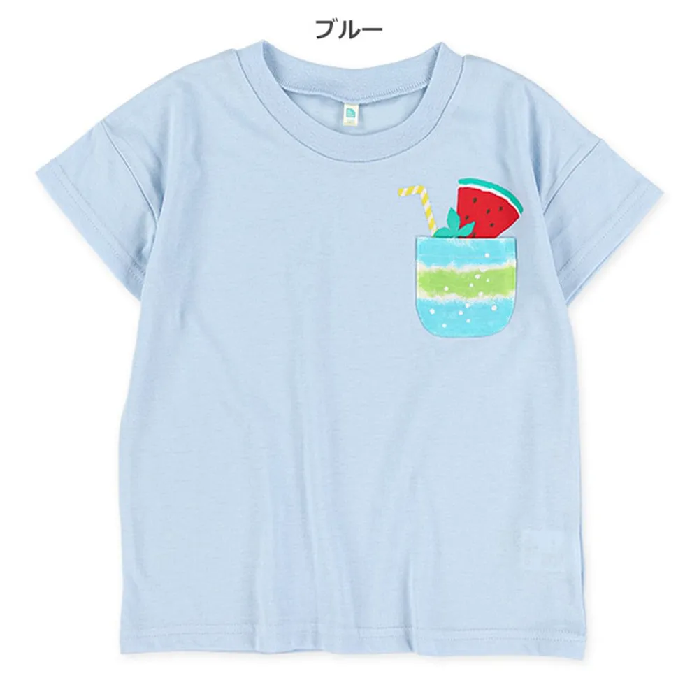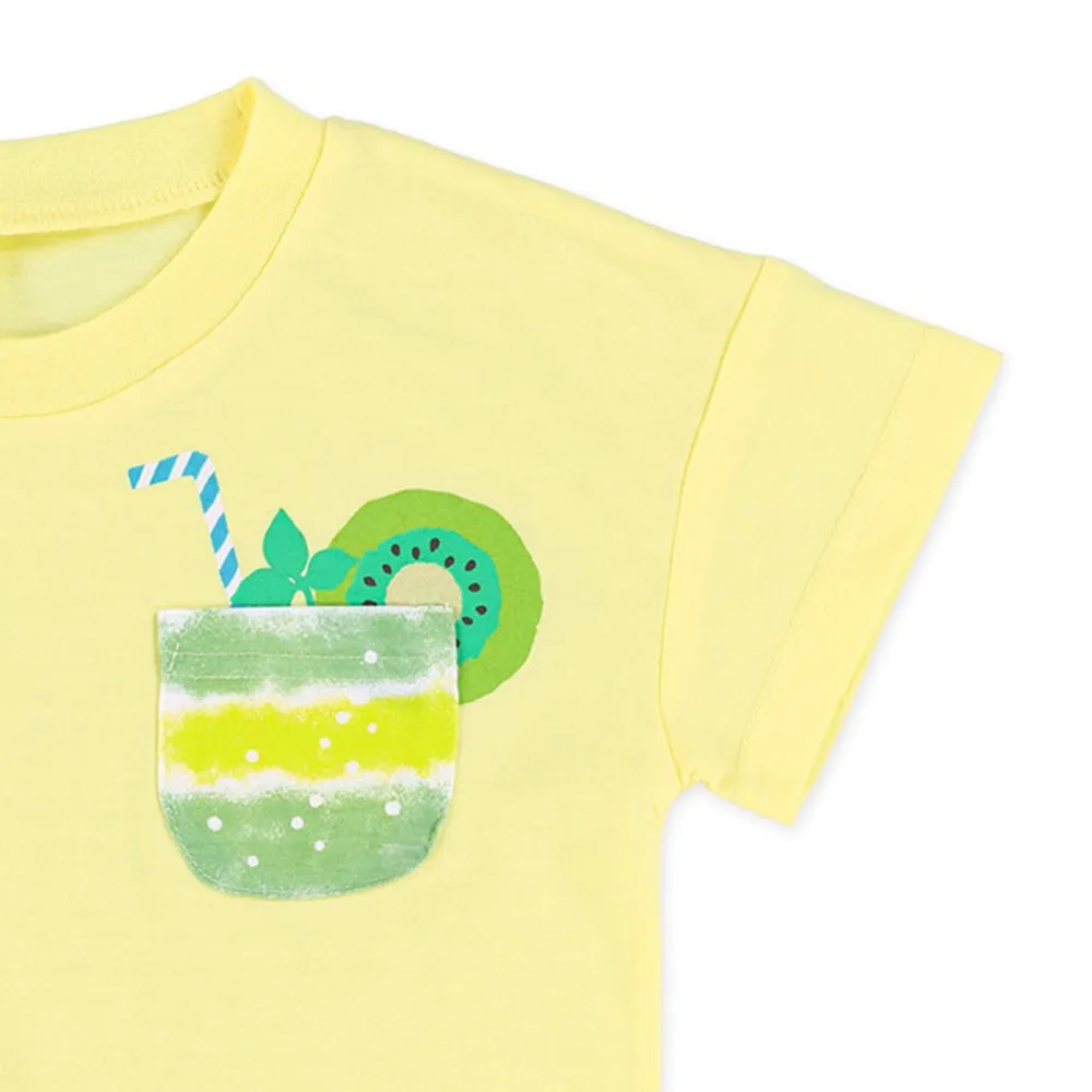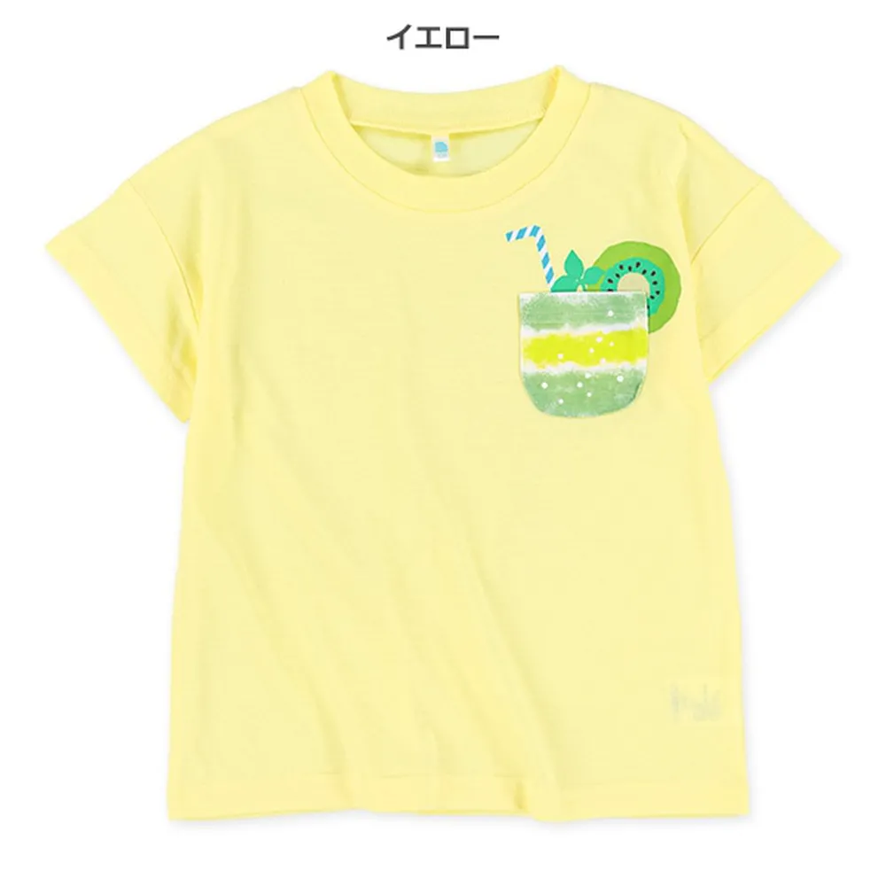日本西松屋 - 可愛果汁口袋短袖上衣-奇異果-黃