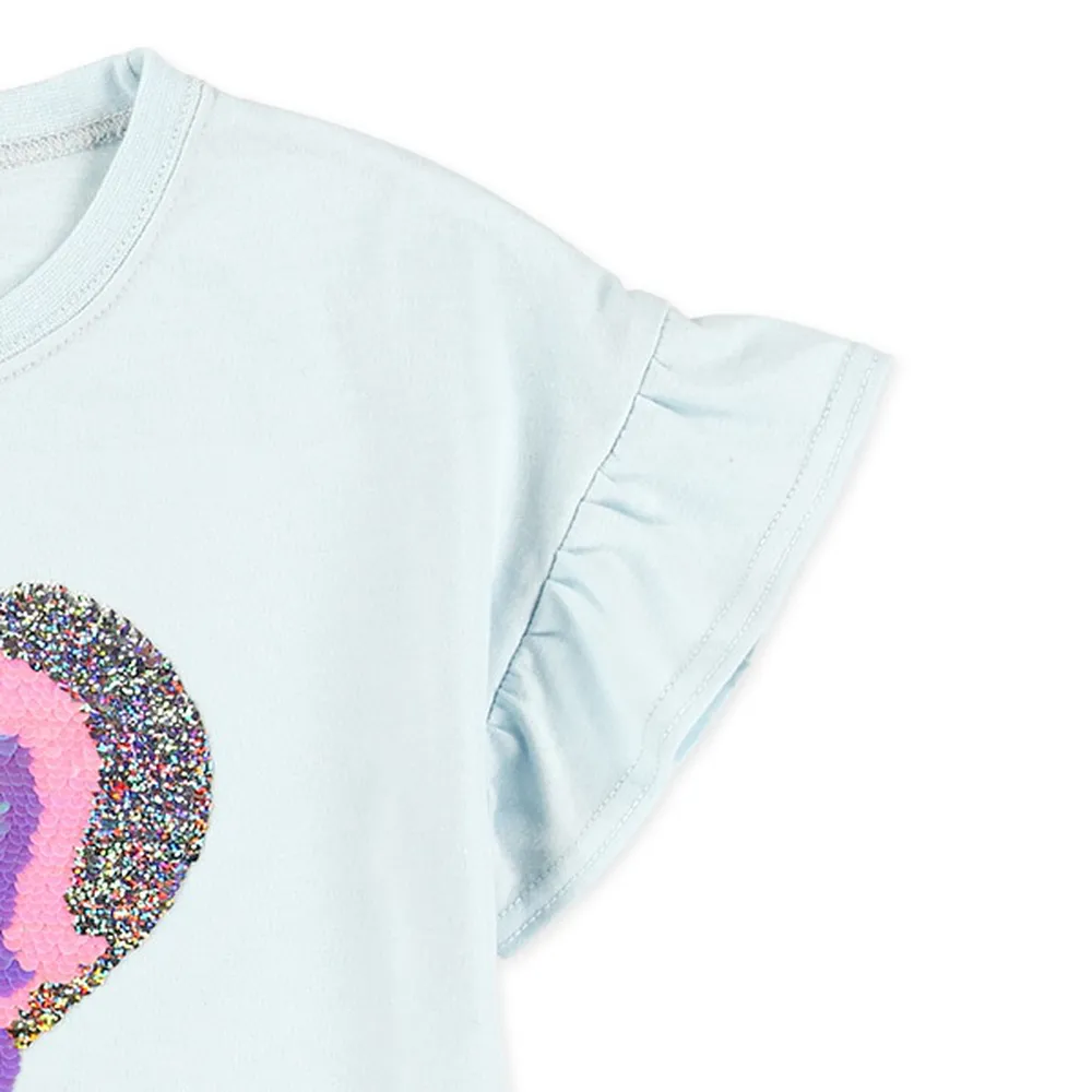 • 品名:閃耀亮片獨角獸荷葉短袖上衣