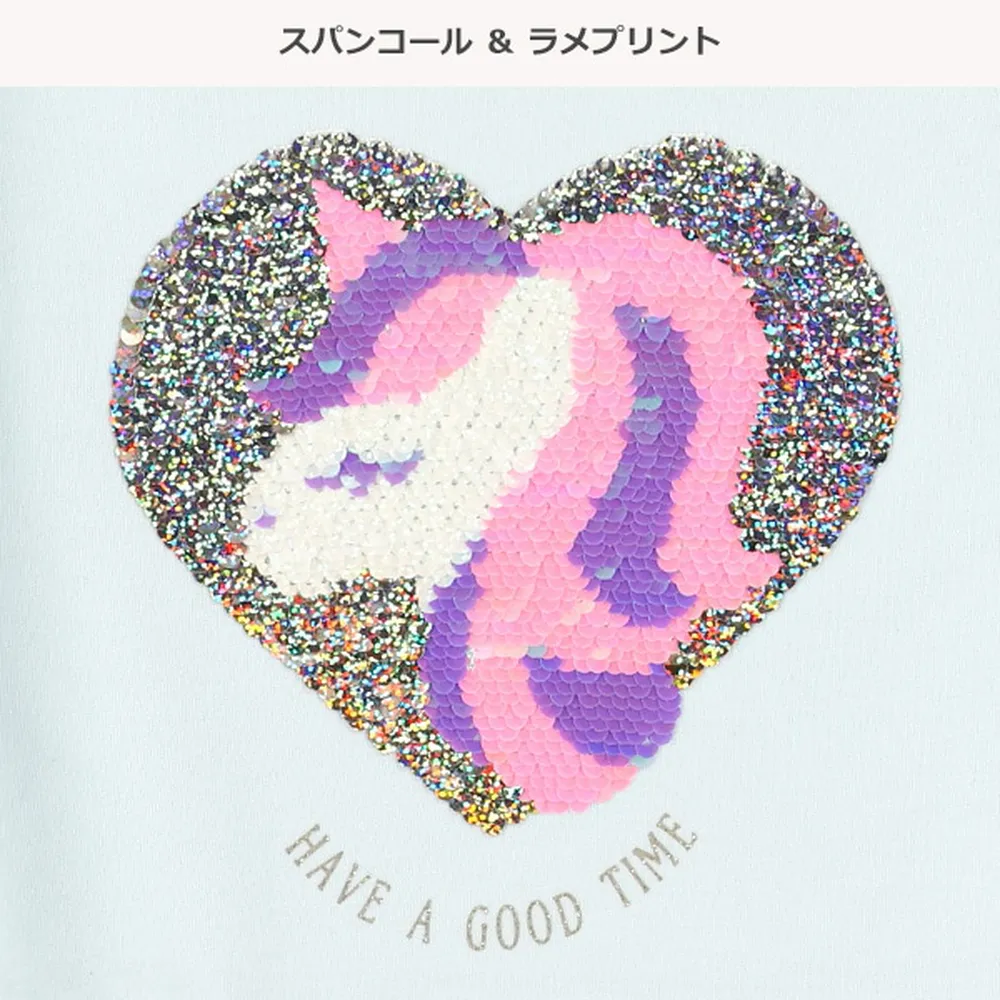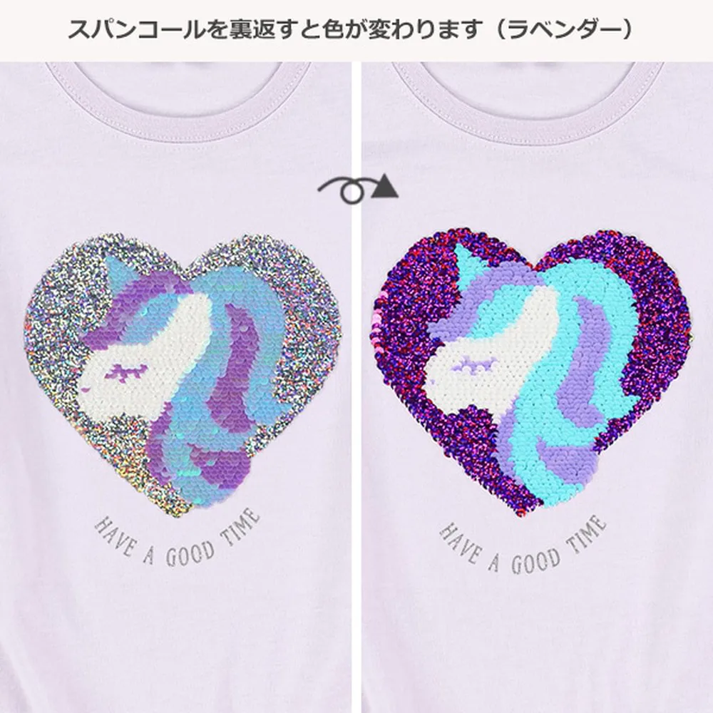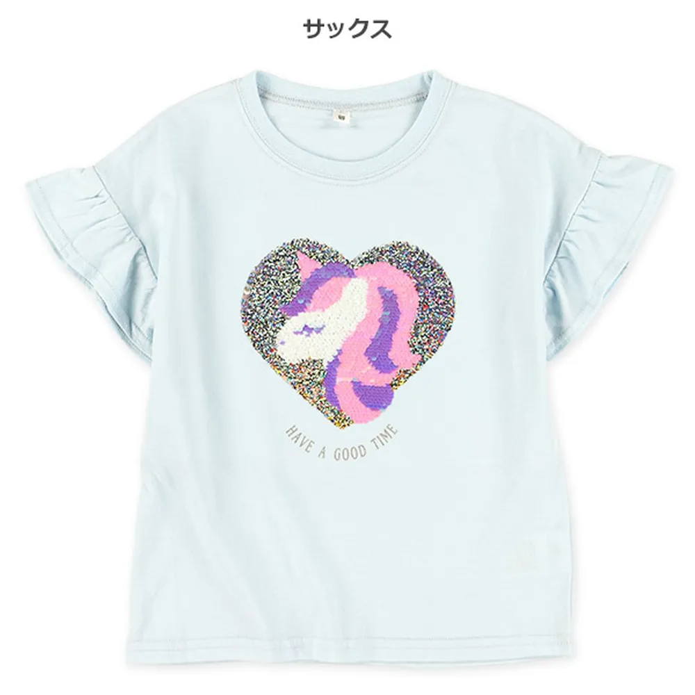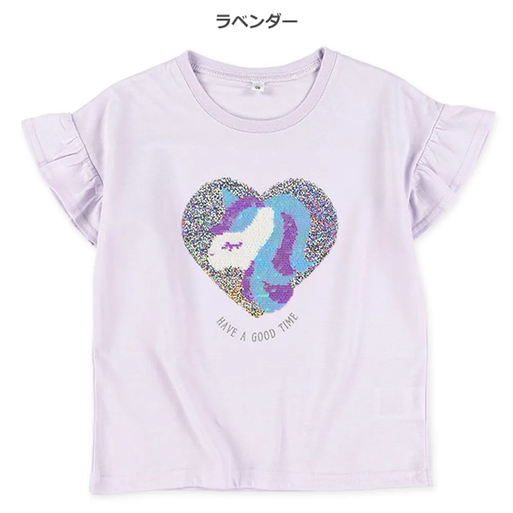 日本西松屋 - 閃耀亮片獨角獸荷葉短袖上衣-薰衣草