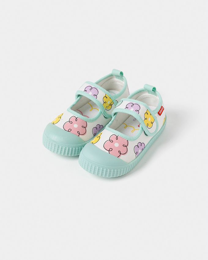 韓國 OZKIZ - 腳趾保護防滑休閒鞋/室內鞋-手繪花朵-米白X湖水綠